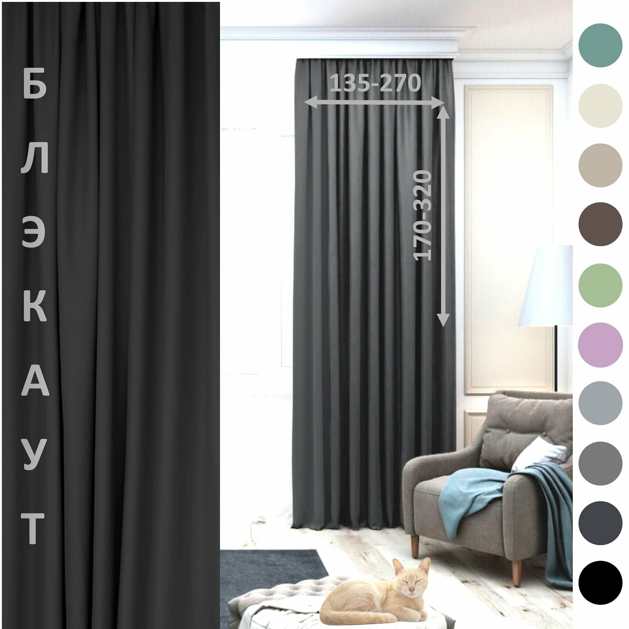Штора светозащитная для комнаты и спальни "Блэкаут матовый графит" 270x320 на ленте