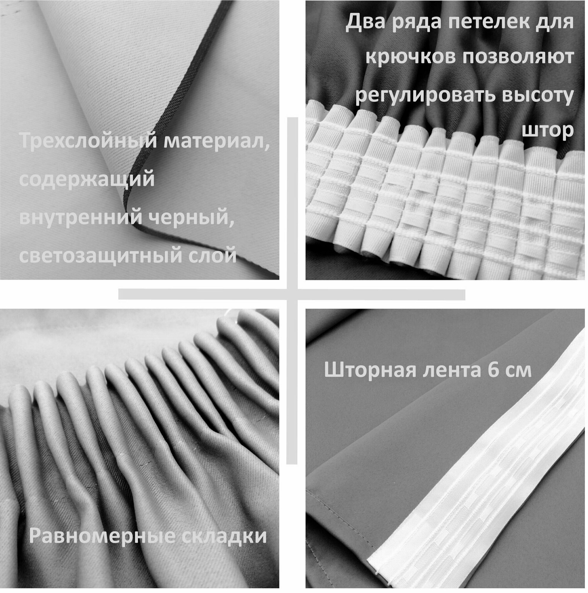 Штора светозащитная для комнаты и спальни "Блэкаут матовый черный" 150x270 на ленте