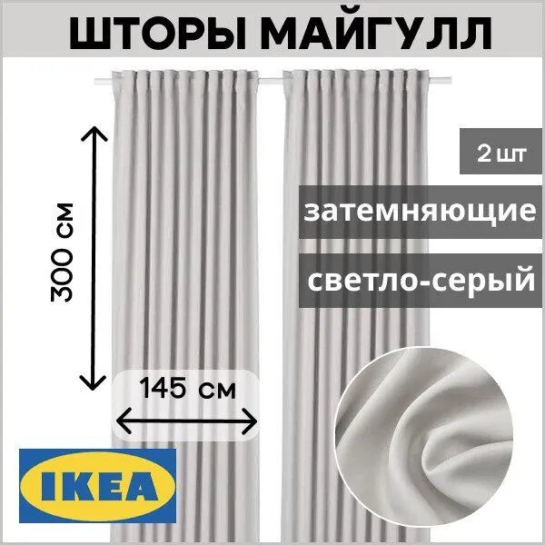 Гардины майгулл икеа шторы на ленте затемняющие 145х300 см, 2шт, светло-серые