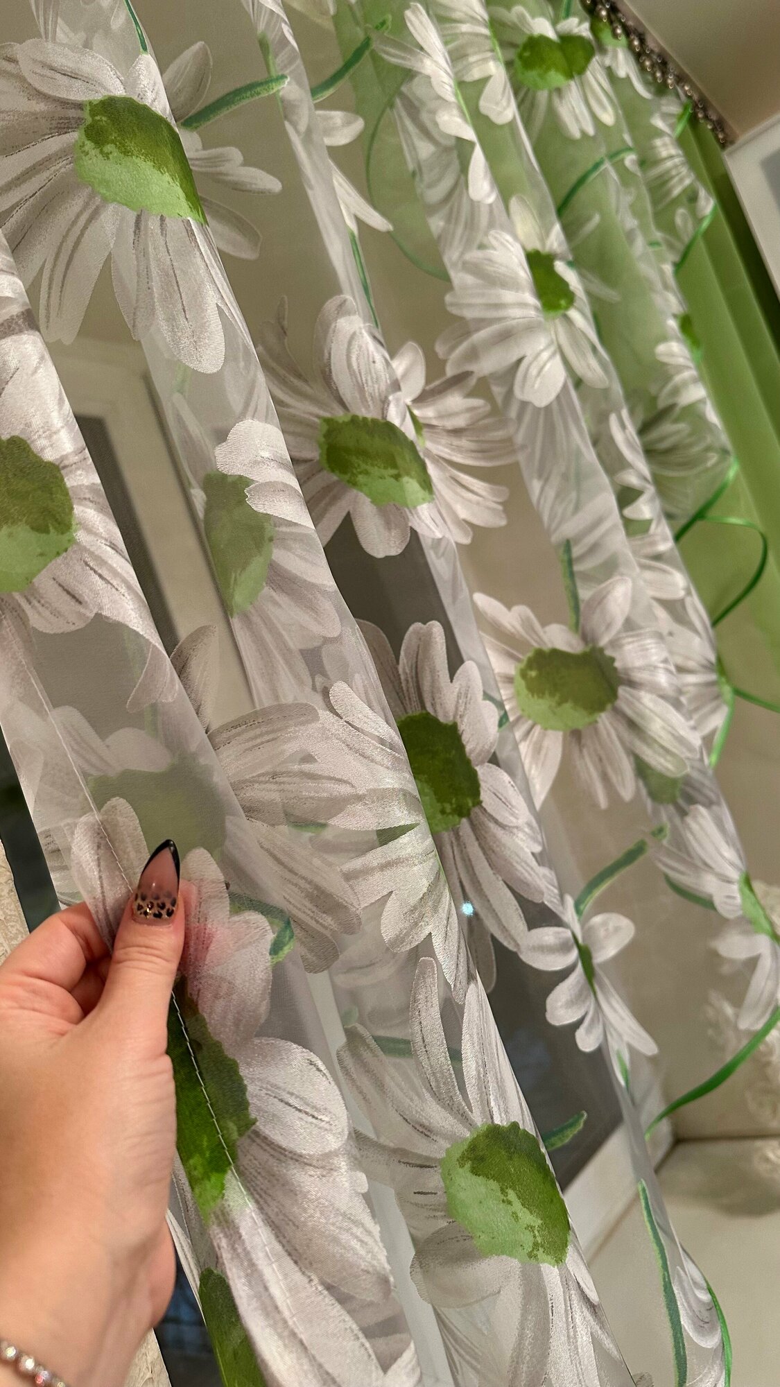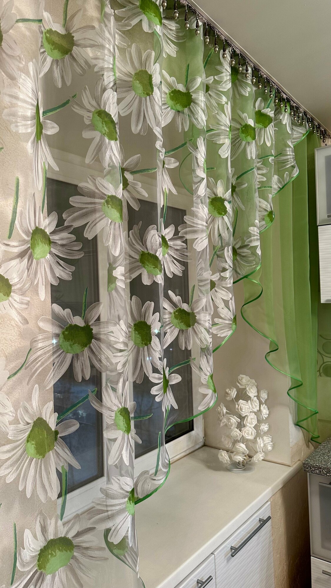 Купить Кухонная шторка ромашка зеленая, ширина 3м, высота 1,7м