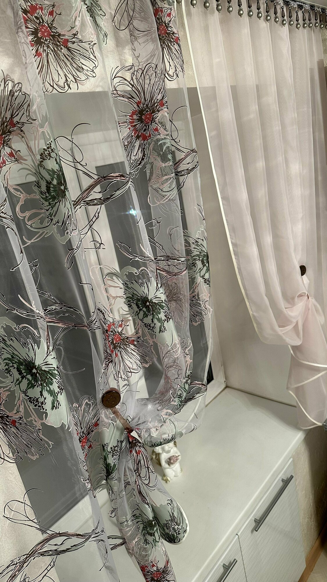 Кухонная шторка сакура серая, ширина 3м, высота 1,7м