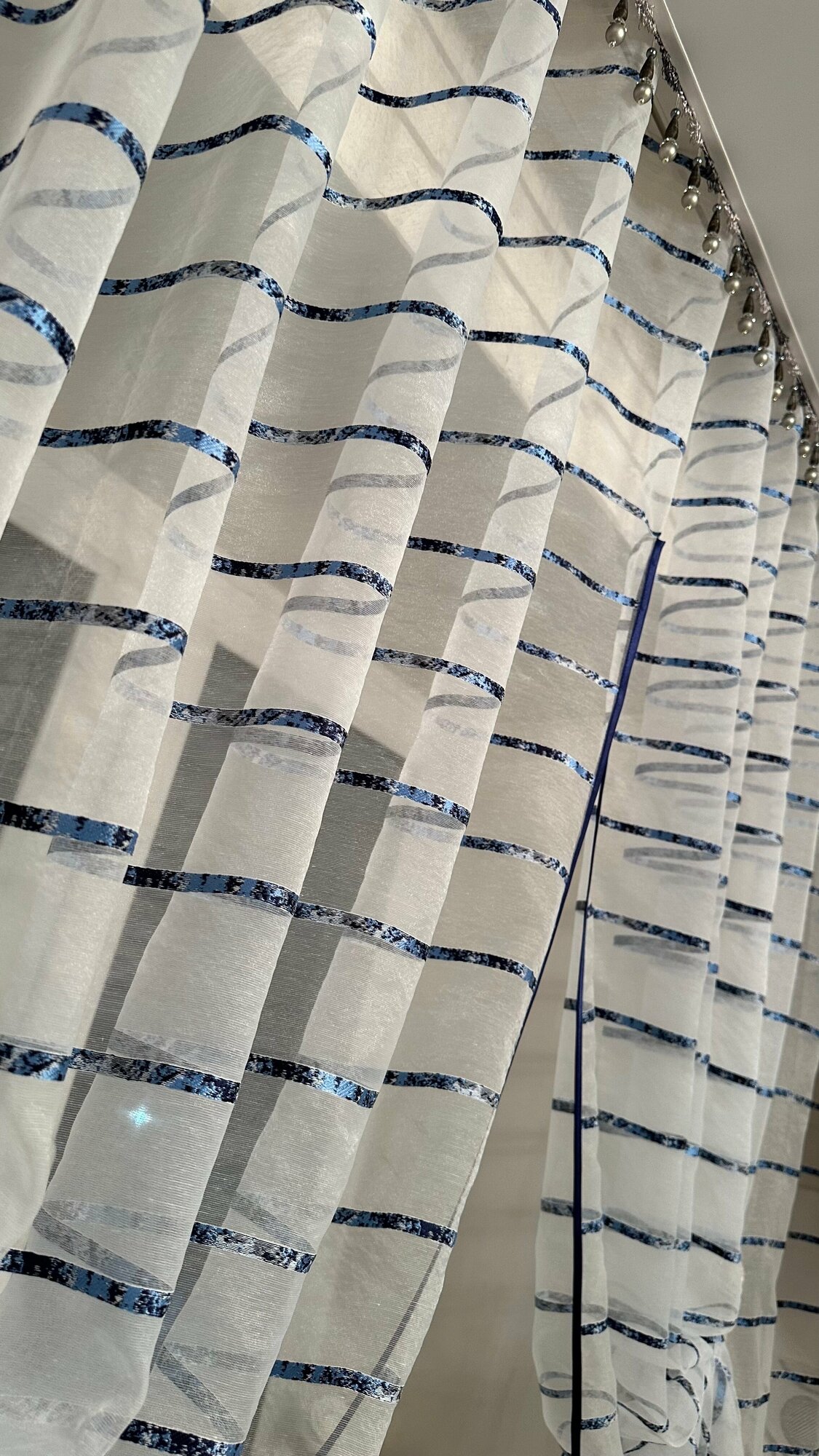 Купить Кухонная шторка полосы серо-синие, ширина 3м, высота 1,7м