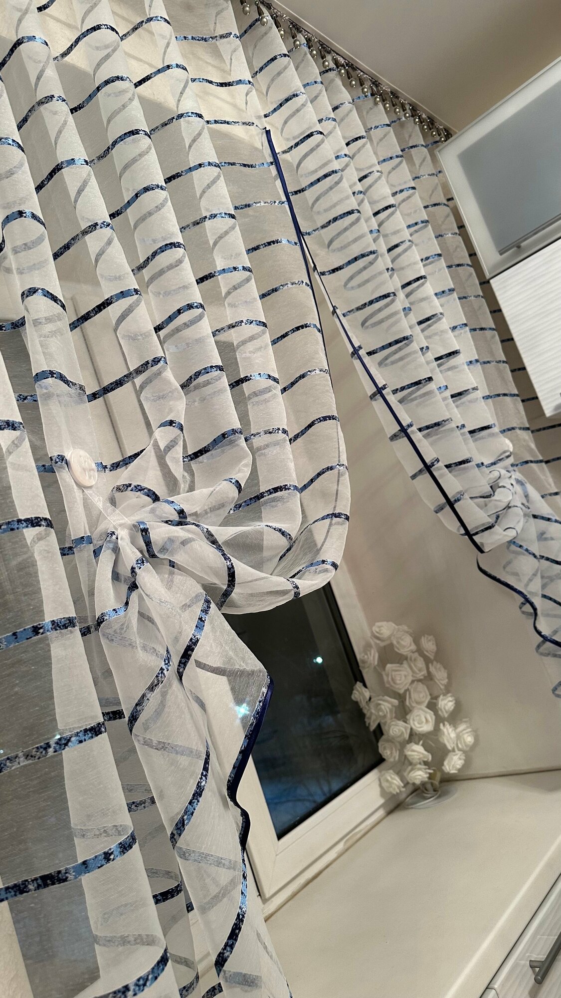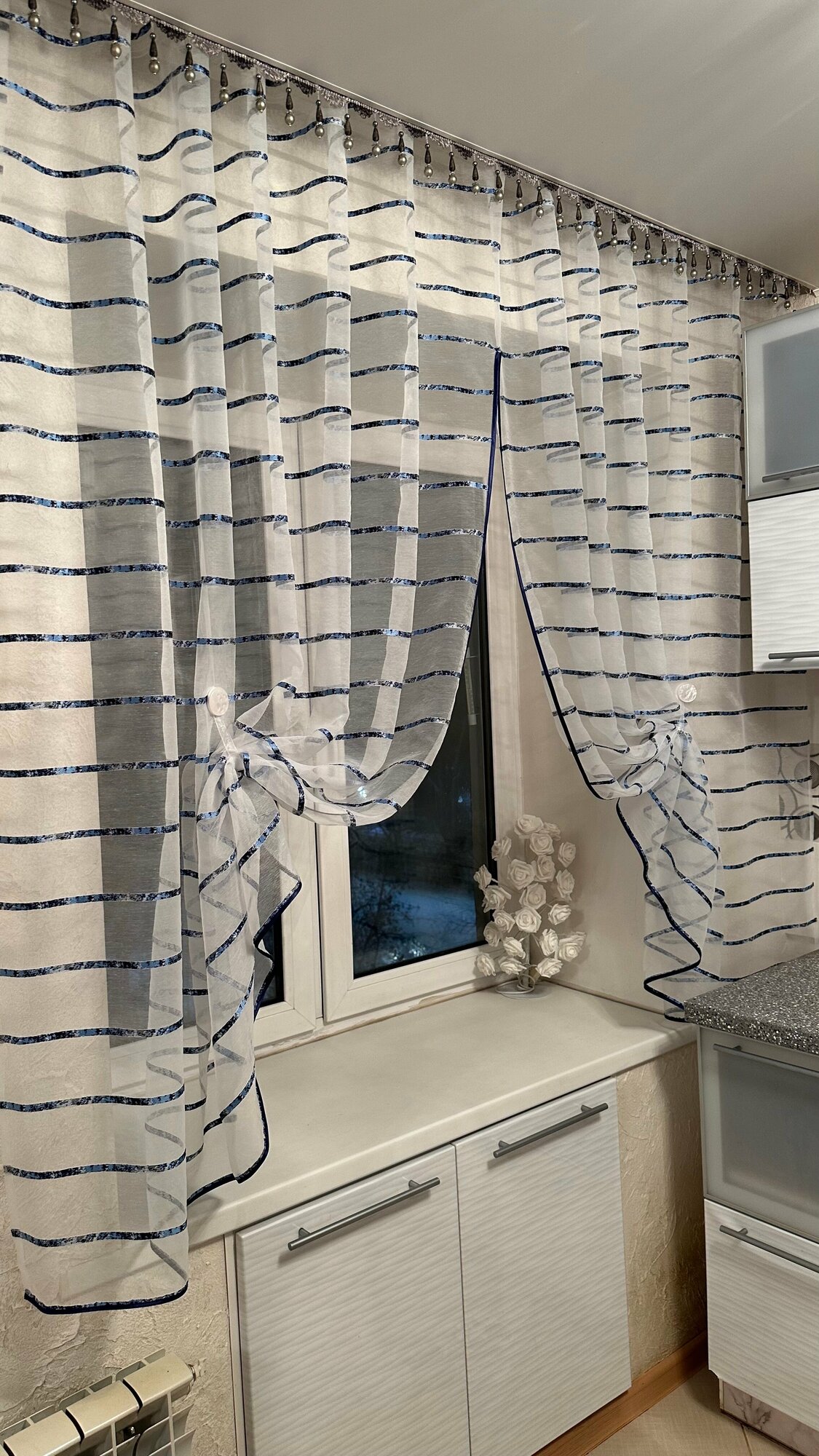 СохранитьКухонная шторка полосы серо-синие, ширина 3м, высота 1,7м интересное: