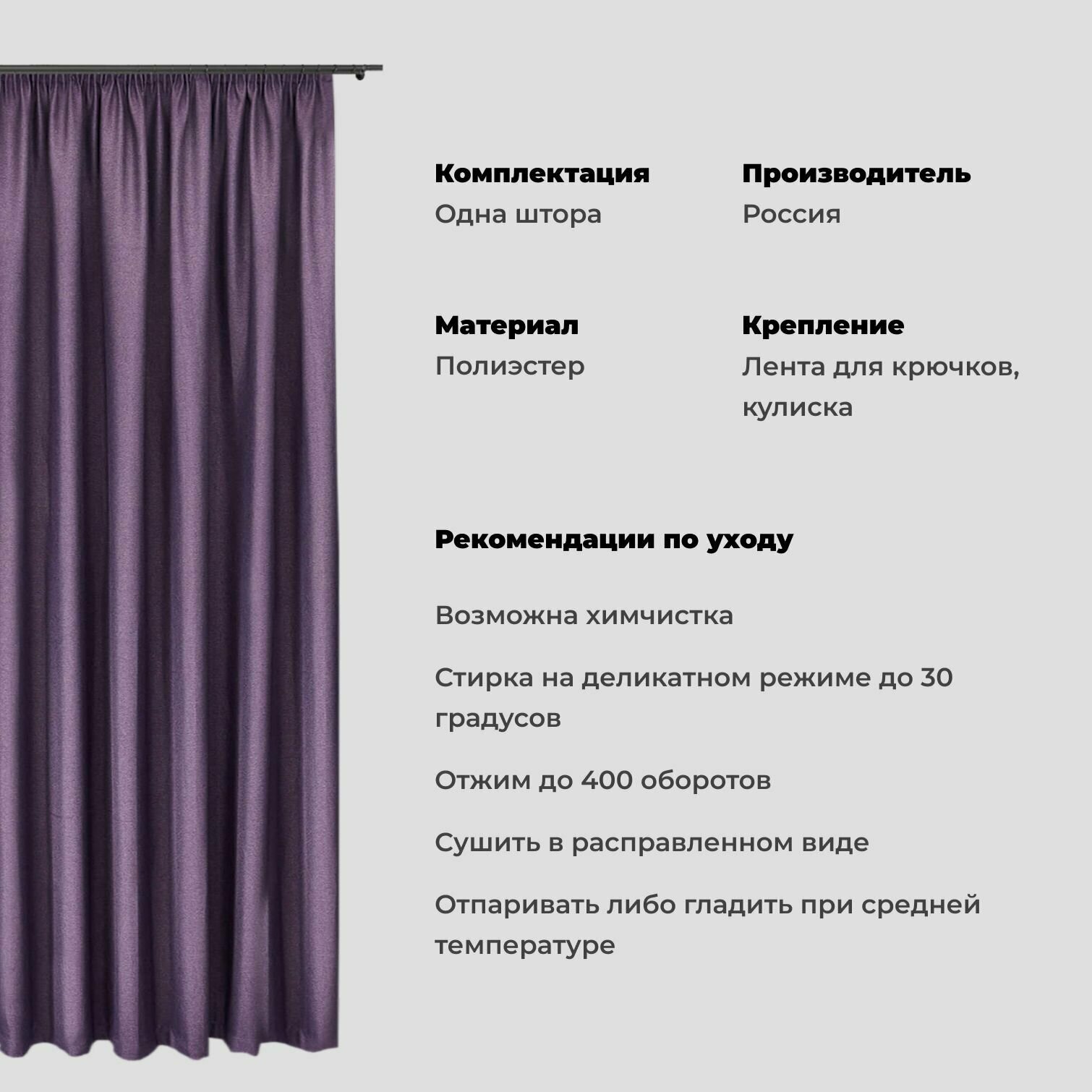 СохранитьШтора для комнаты 150x270 см Блэкаут рогожка Shtoraland на ленте для крючков, одна портьера для гостиной, спальни, детской. Фиолетовый цвет интересное:
