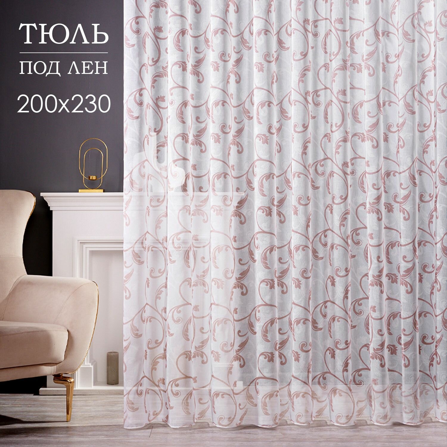 Купить Готовый тюль под лен ширина 200 см высота 230 см с утяжелителем; занавеска 2 м для комнаты