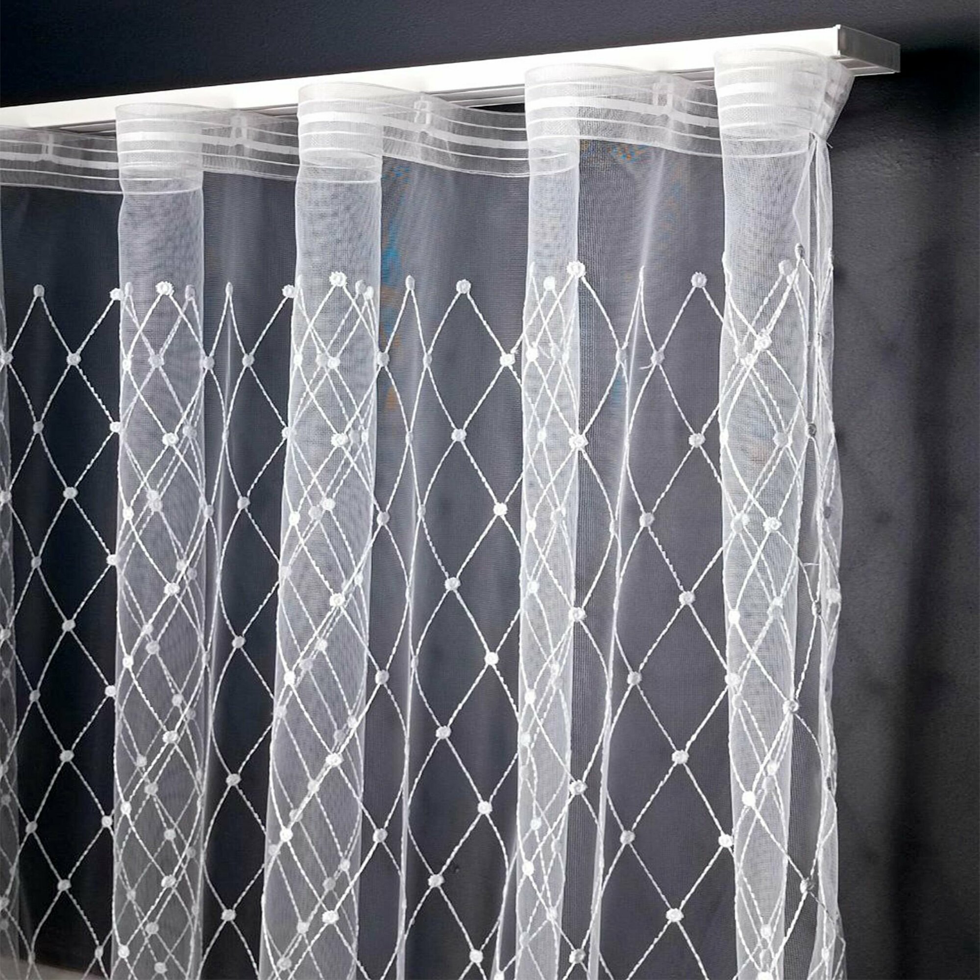 Купить Тюль Levaliya для комнаты и кухни с вышивкой высота 270 см, ширина 300 см, крепление - Лента, цвет - Белый.