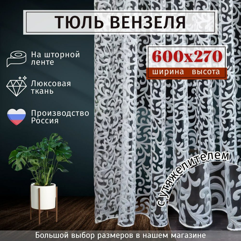СохранитьТюль органза "Вензеля" Высота 270см Ширина 600см, 270х600, в гостиную, спальню, детскую, цвет белый интересное: