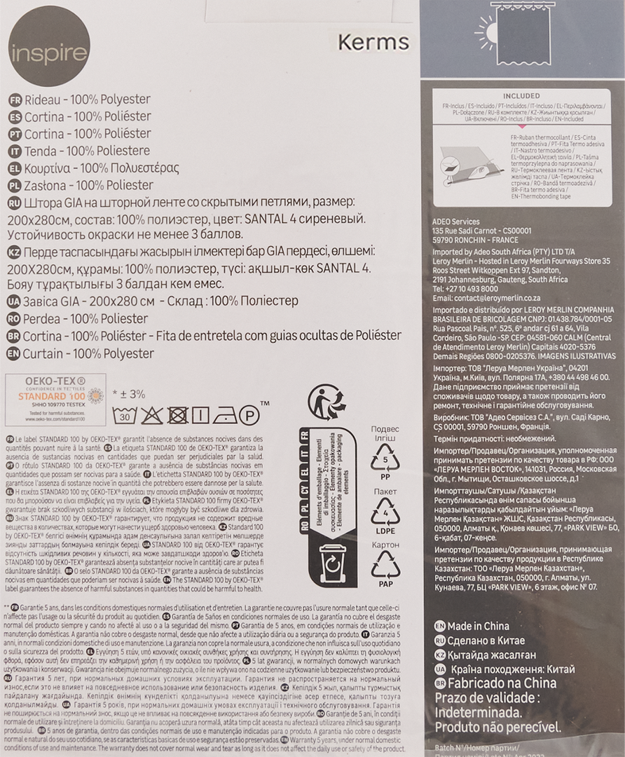 | Дополнительная информация | Штора на ленте со скрытыми петлями Inspire Kerms 200x280 см цвет серо-коричневый Moon 4 |