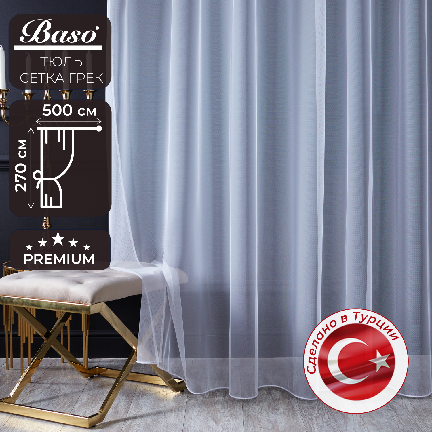 Купить Тюль сетка Baso на шторной ленте / для интерьера гостиной, спальни, кухни, дом, дача / 270х500 см., 1 шт., белый, Турция