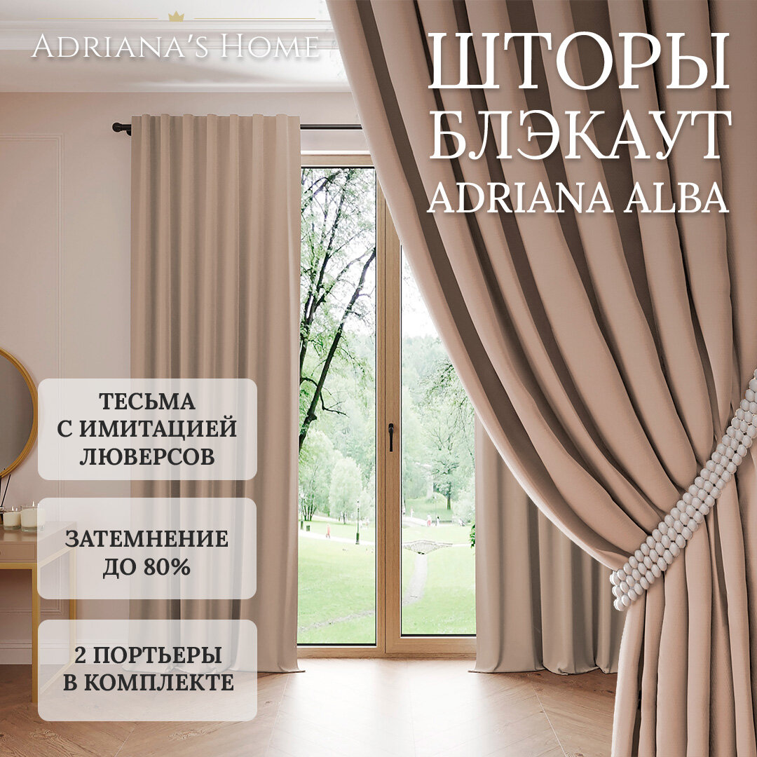 Шторы Adriana Alba, блэкаут, бежевый, комплект из 2 штор, высота 265 см, ширина 300 см, люверсная лента