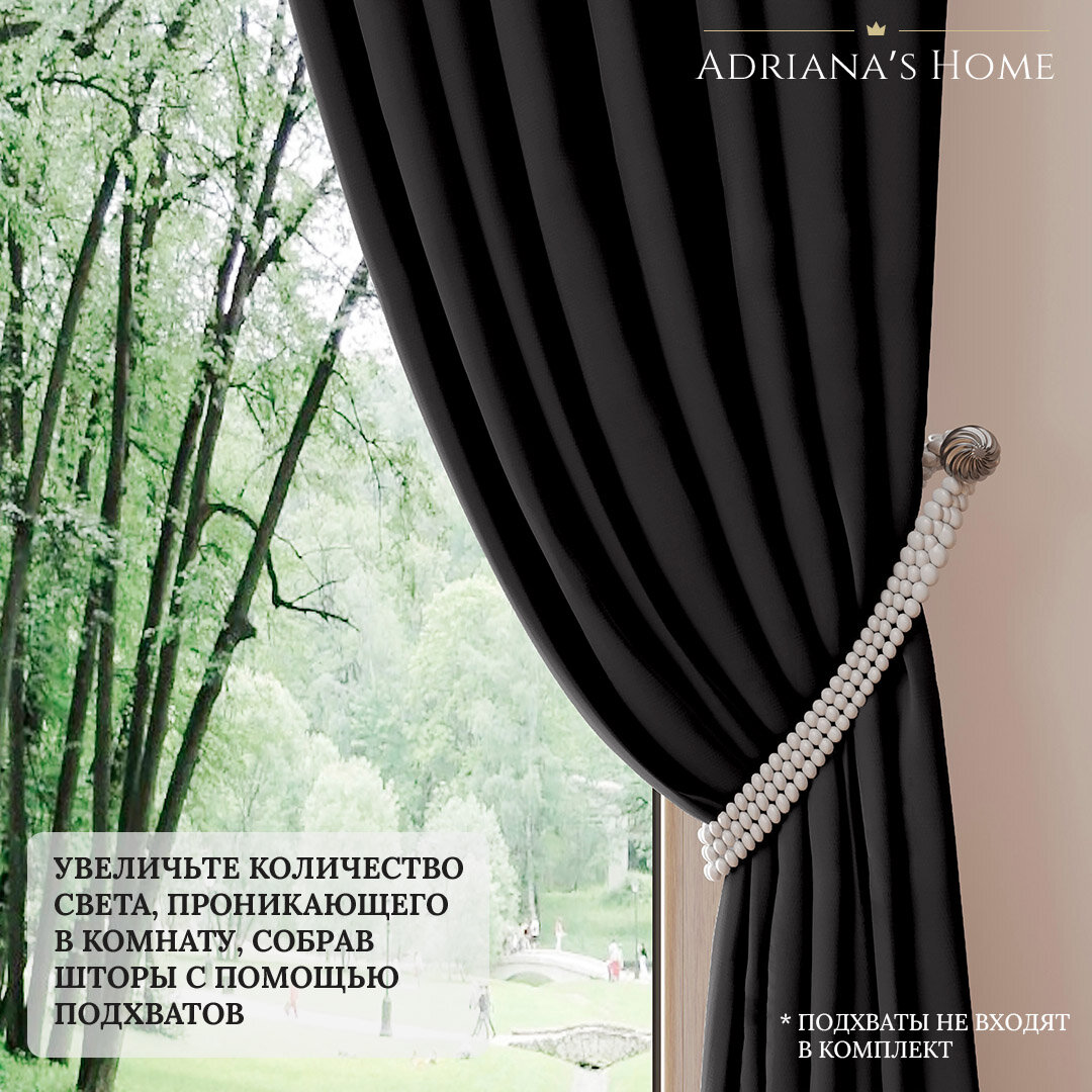 СохранитьШторы Adriana Alba, блэкаут, черный, комплект из 2 штор, высота 265 см, ширина 200 см, люверсная лента интересное: