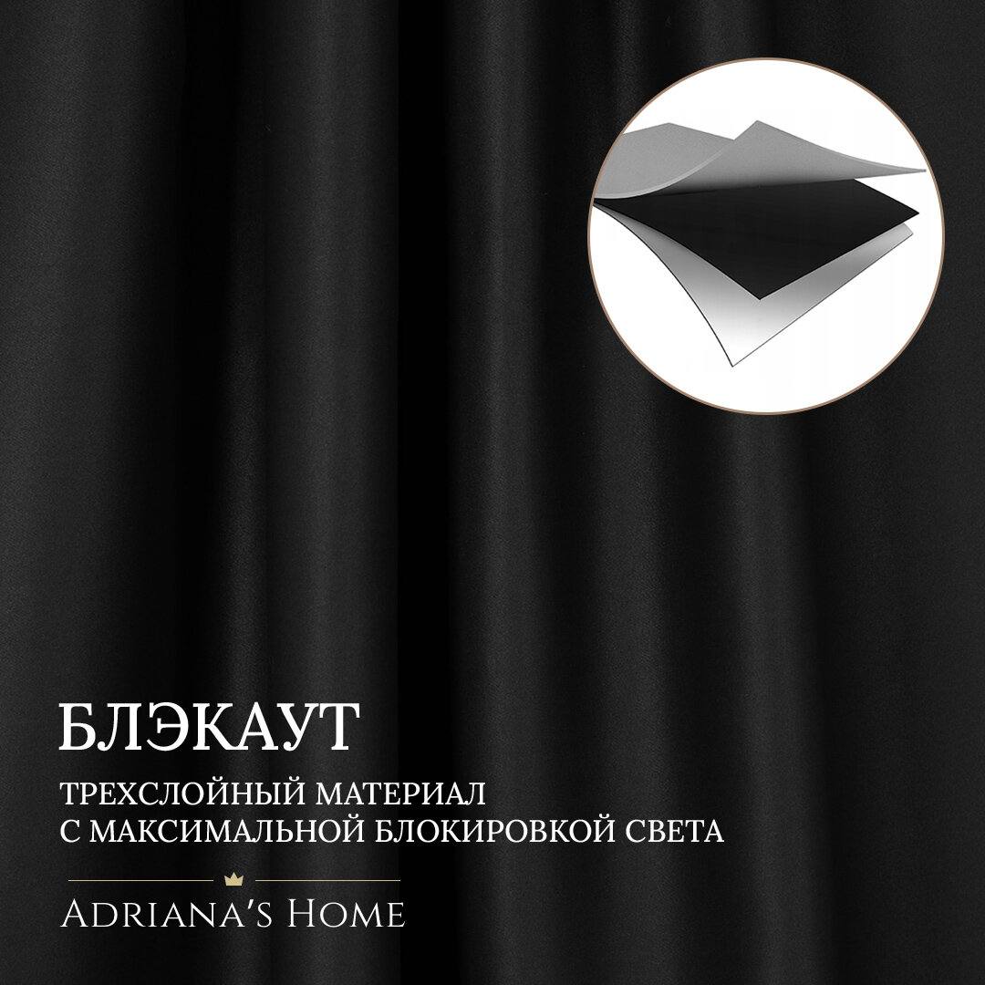 Шторы Adriana Alba, блэкаут, черный, комплект из 2 штор, высота 270 см, ширина 250 см, люверсная лента