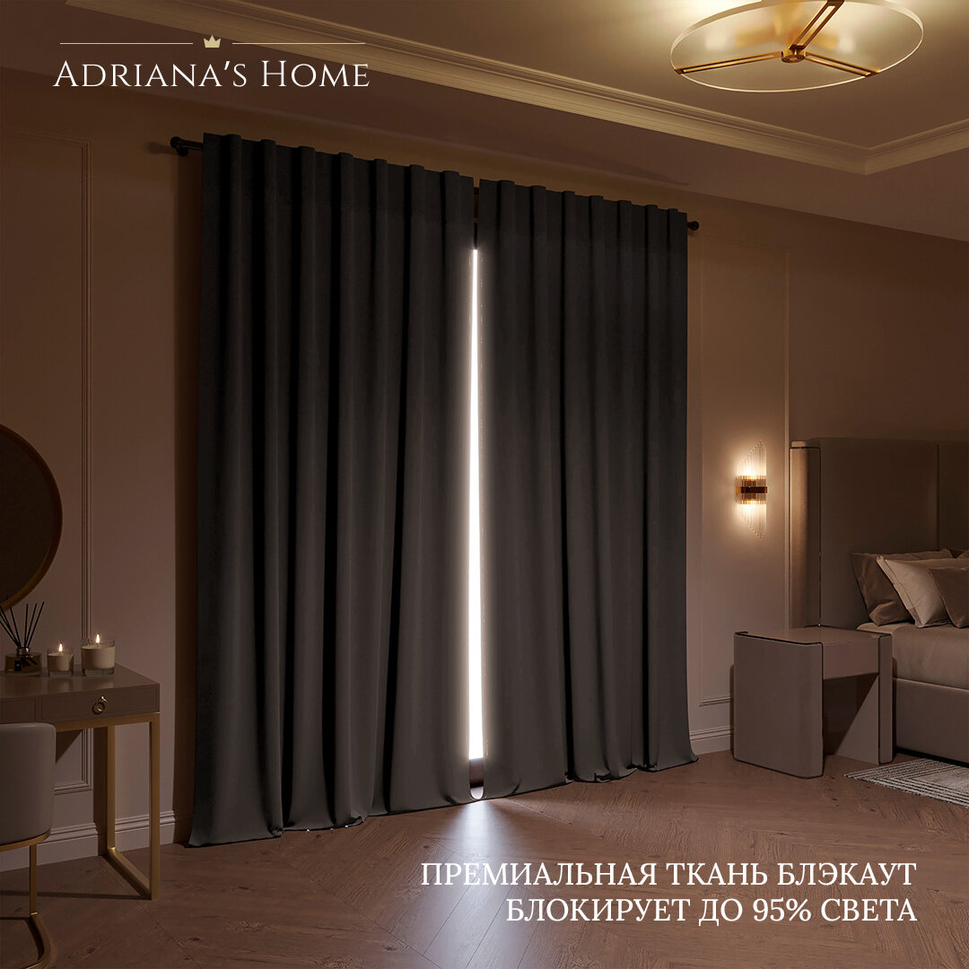 Шторы Adriana Alba, блэкаут, темно-серый, комплект из 2 штор, высота 220 см, ширина 250 см, люверсная лента