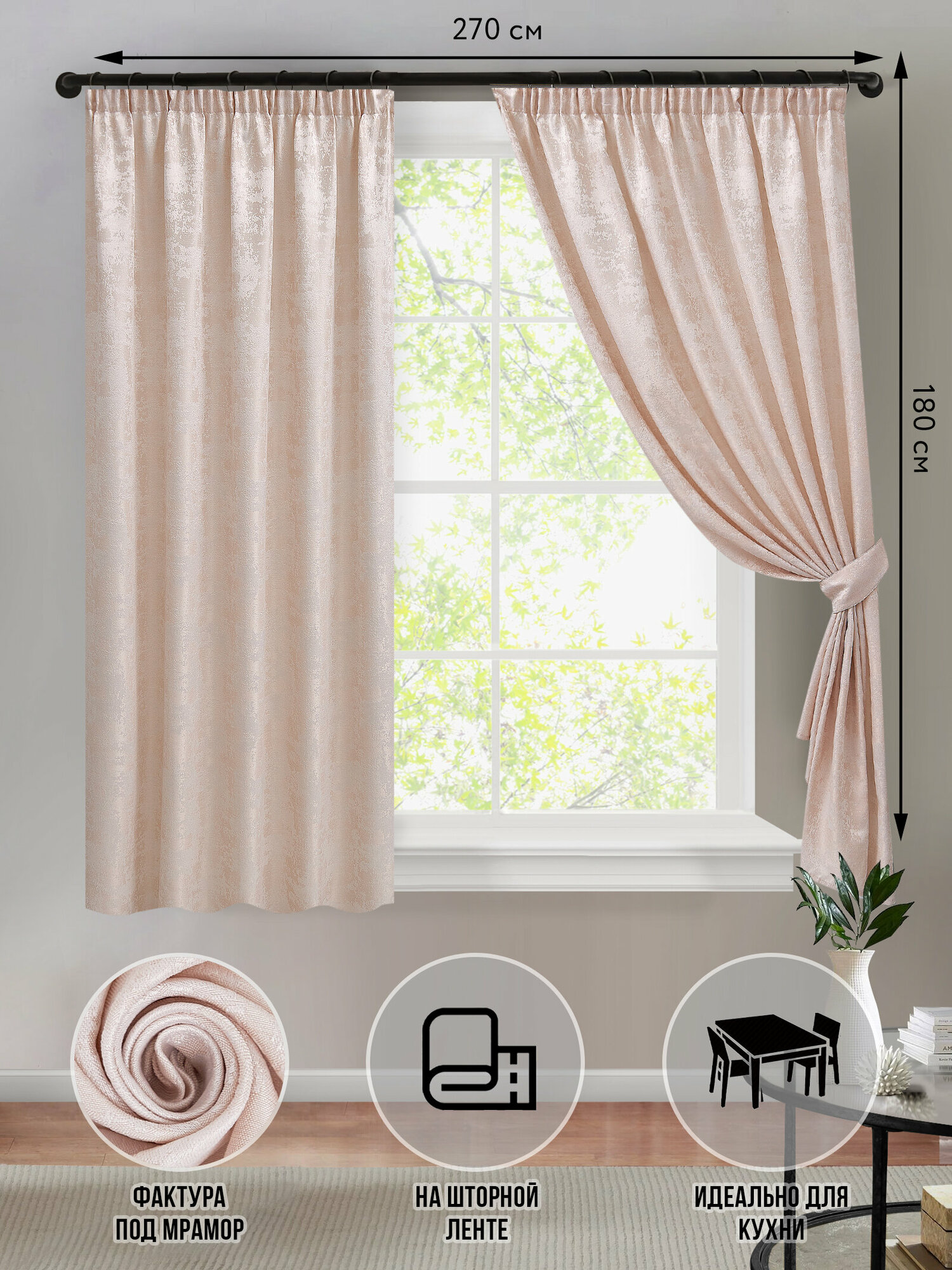 Шторы короткие SvAlMi бежевый мрамор для кухни спальни детской
