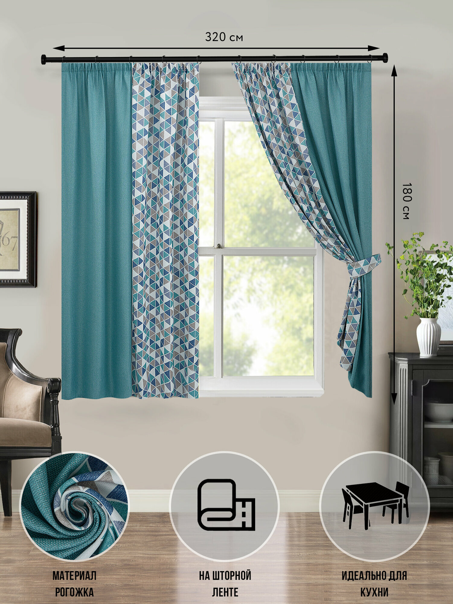 Шторы короткие плотные SvAlMi рогожка блэкаут голубые для кухни спальни детской интересное: