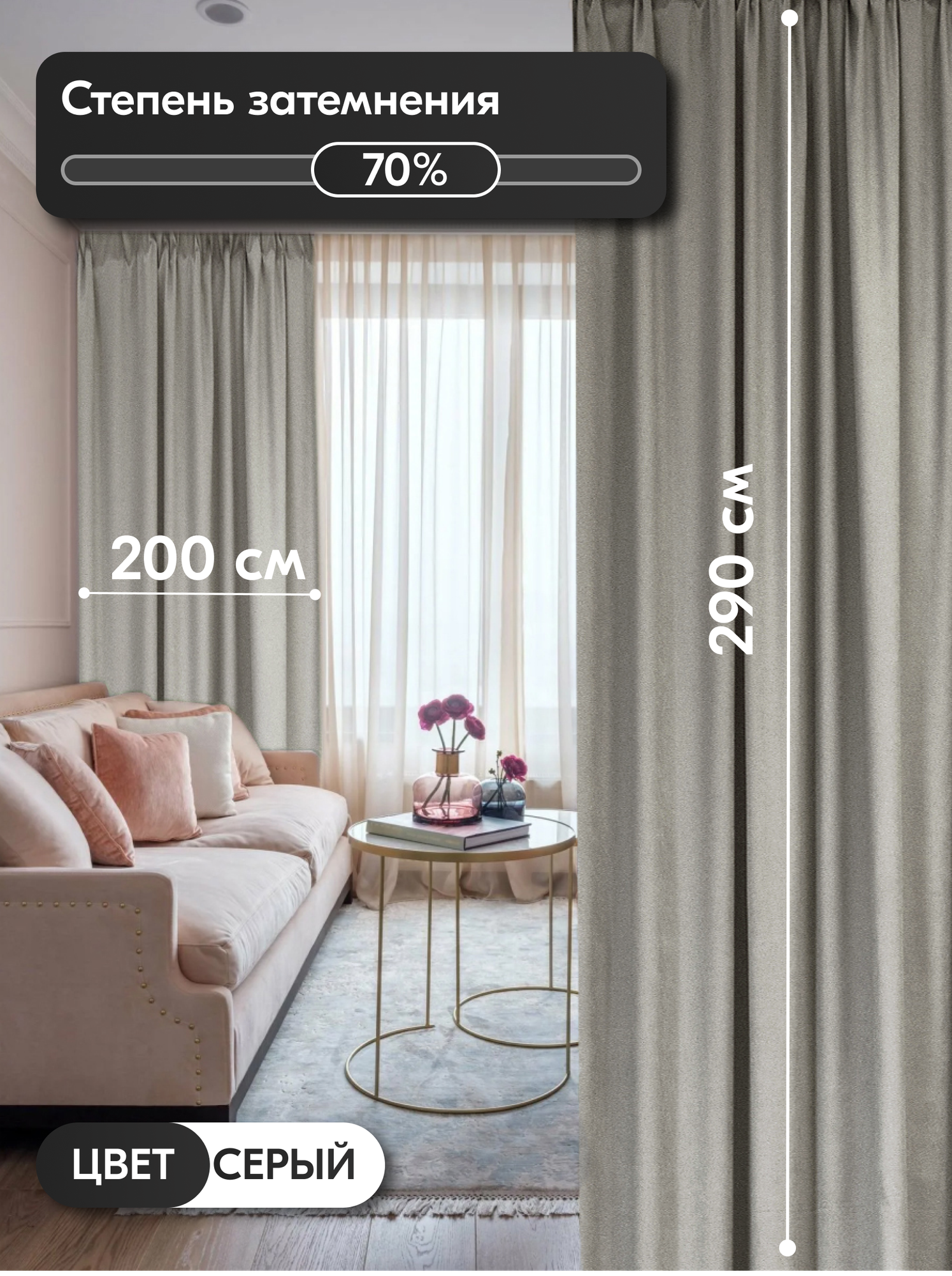 СохранитьКомплект матовых портьерных штор 400x290 см, 2 штуки, канвас, цвет: серый интересное: