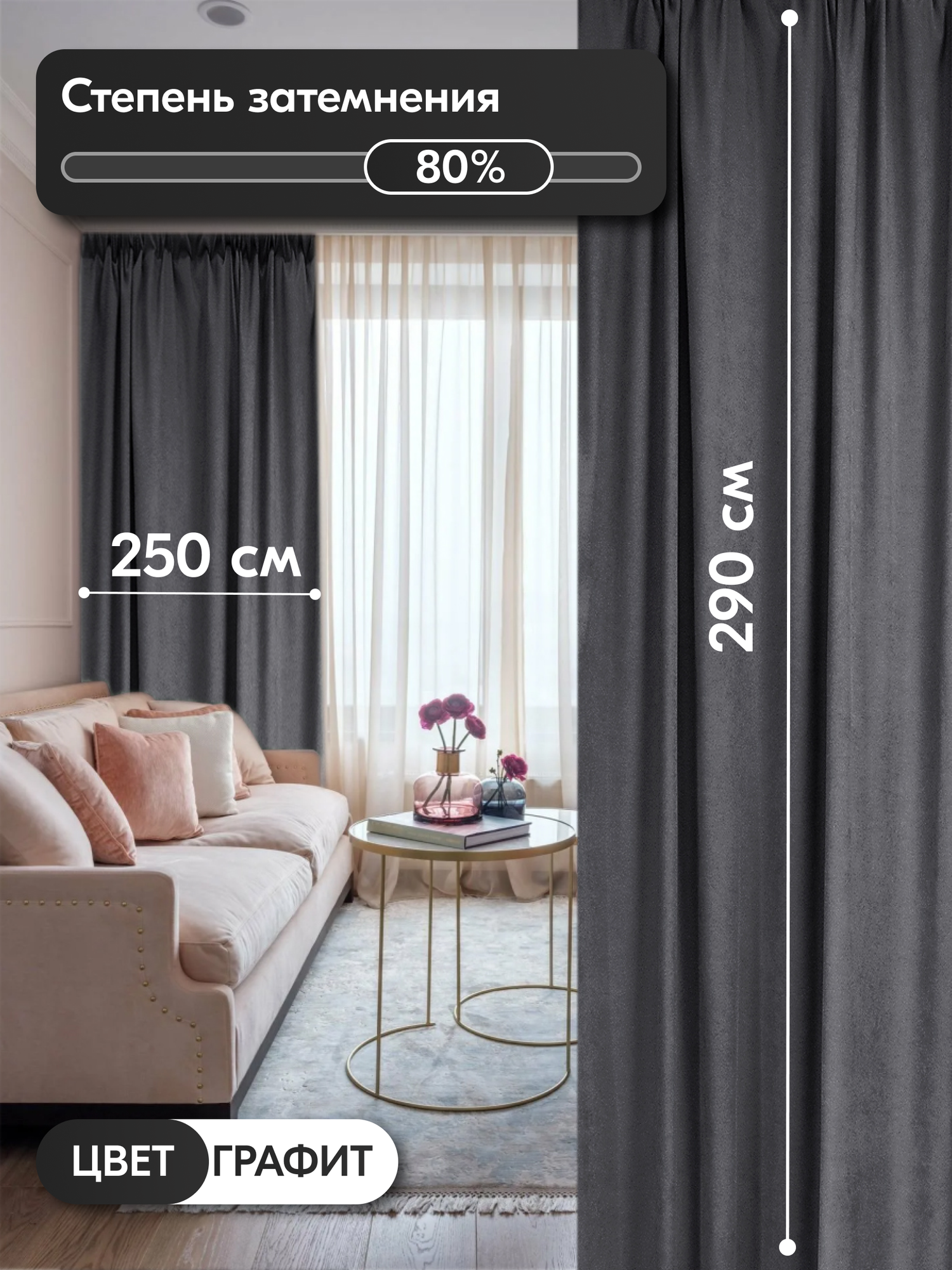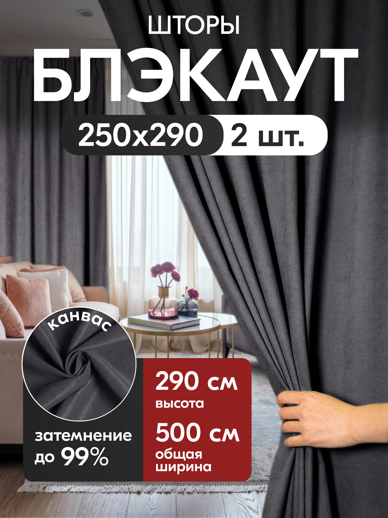 Купить Комплект матовых портьерных штор 500x290 см, 2 штуки, канвас, цвет: графит,серый