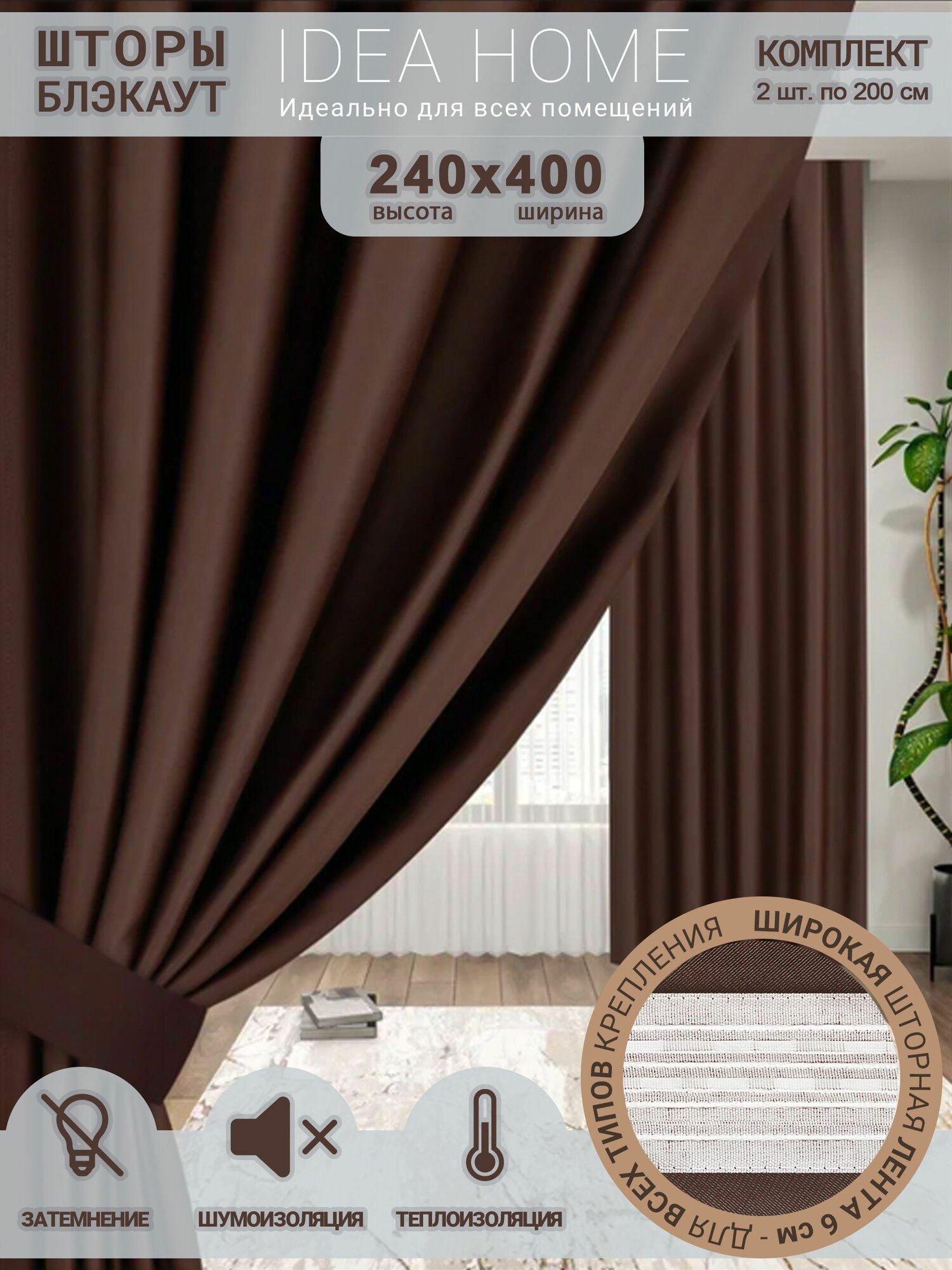 Комплект штор из 2 шт, 4м блэкаут/ blackout IDEA HOME светозащитные для комнаты , кухни , спальни , гостиной и дачи 400*240 см , однотонные , коричневые