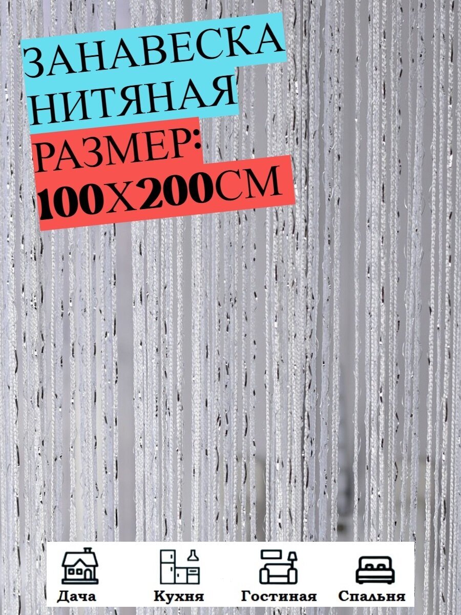 СохранитьНитяные шторы кисея (занавеска нитяная), люрекс 100Х200см (белый) интересное: