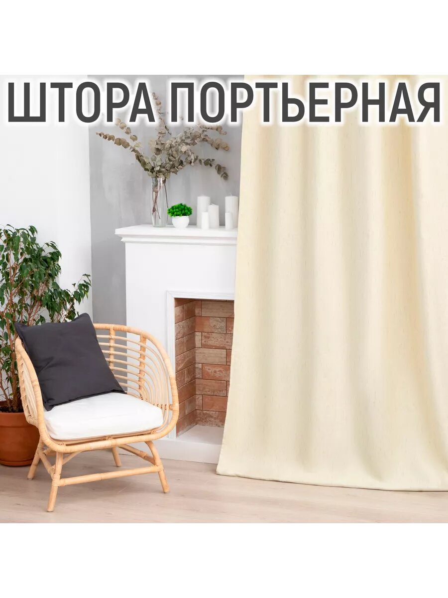 Штора портьерная Этель Классика цвет светло бежевый, на шторн.ленте 250х265 см,100% п/э Этель 7062