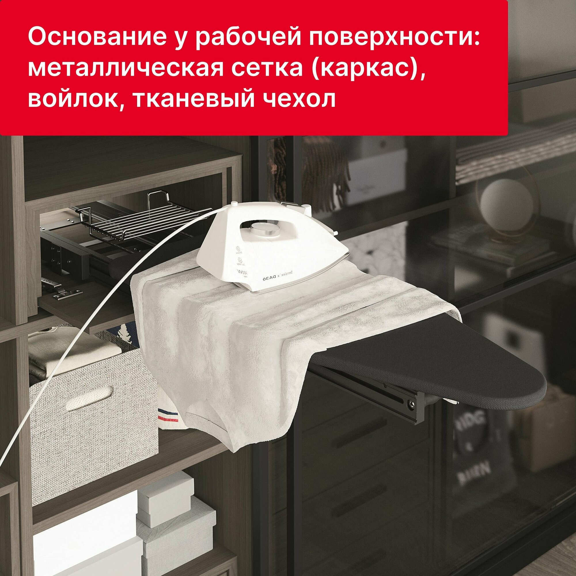 Доска гладильная встраиваемая Starax S-6616-A / выдвижная, складная / в базу 400 мм / антрацит интересное:
