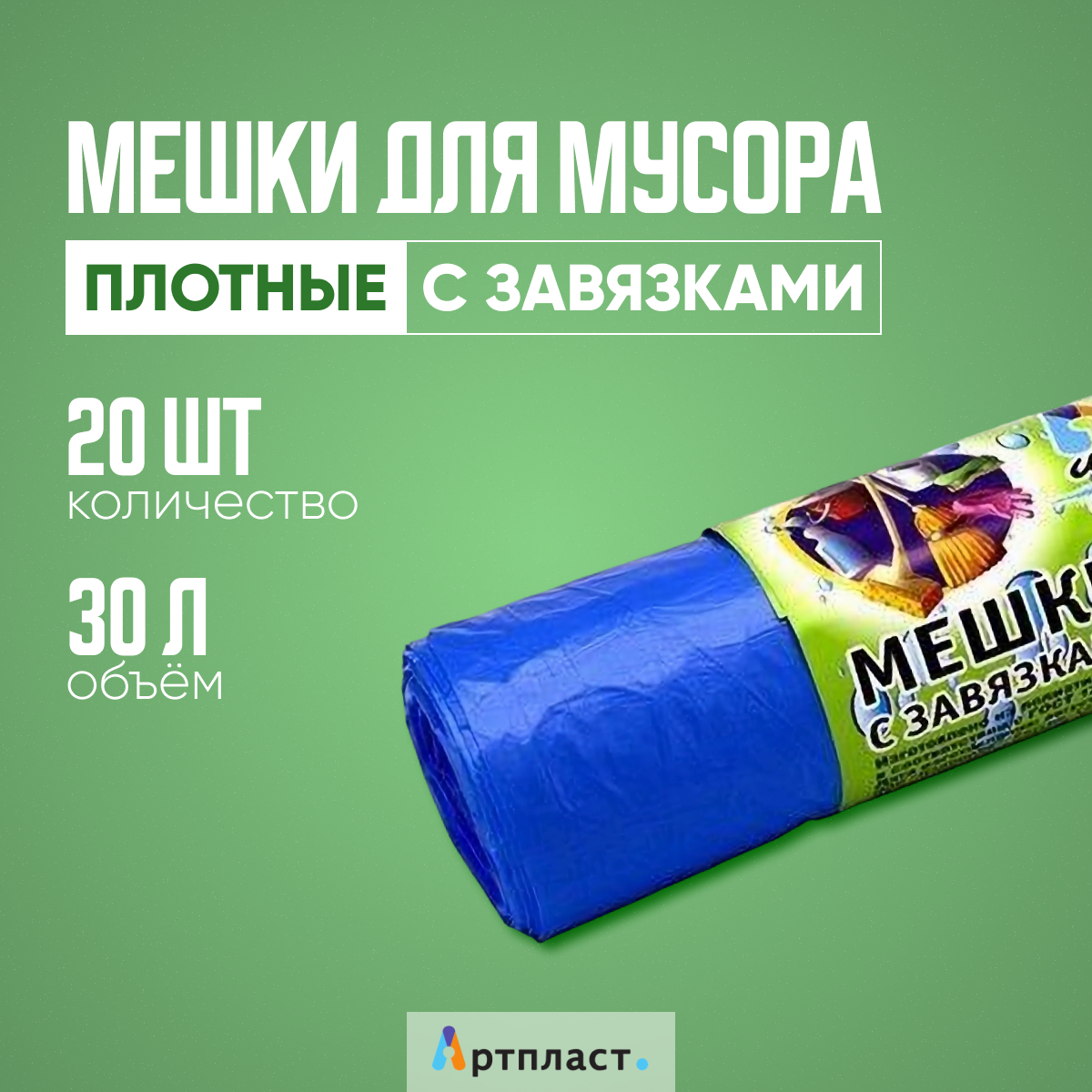 Пакеты для мусора с завязками 30 литров - 20 штук интересное: