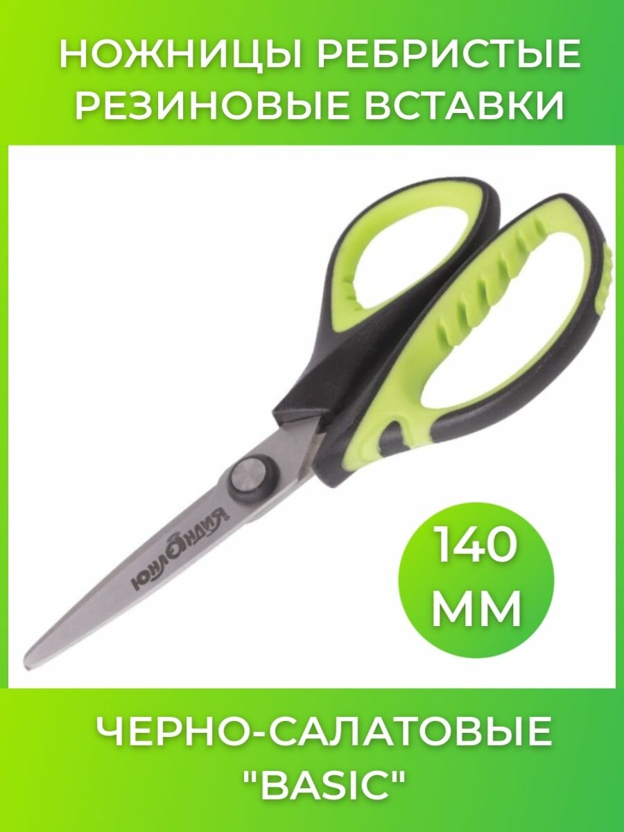 СохранитьНожницы юнландия "BASIC", 140 мм, ребристые резиновые вставки, черно-салатовые, европодвес, 236990 интересное:
