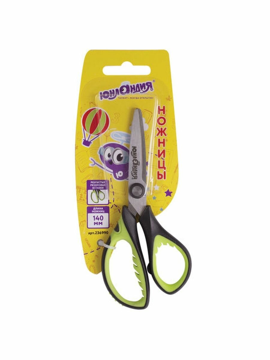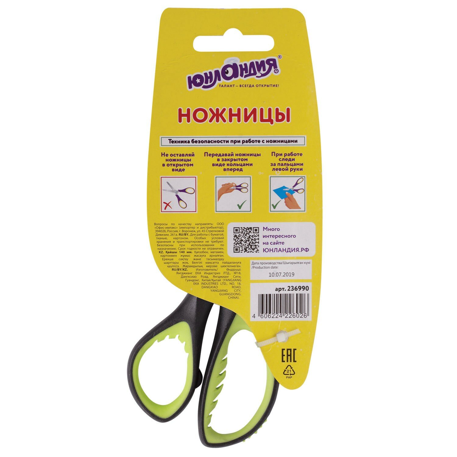 Комплект 29 шт, Ножницы юнландия "BASIC", 140 мм, ребристые резиновые вставки, черно-салатовые, европодвес, 236990