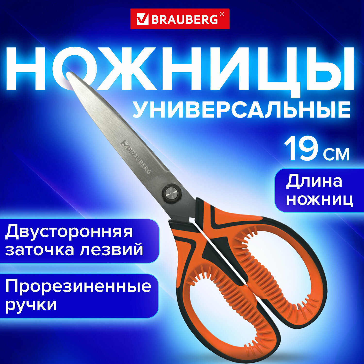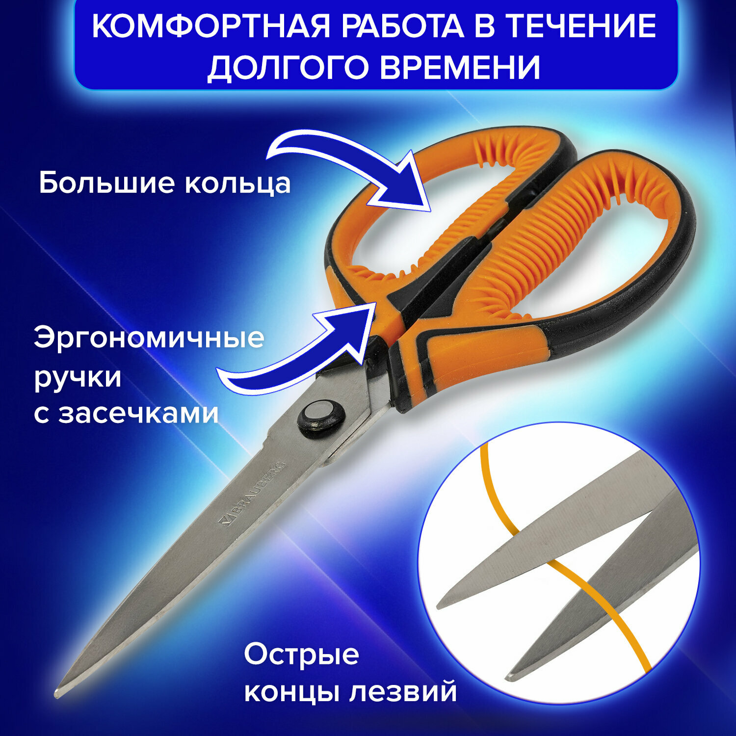 Ножницы для рукоделия 190мм оранжевые BRAUBERG ULTRA COLOR, противоскользящие ручки,880241 интересное: