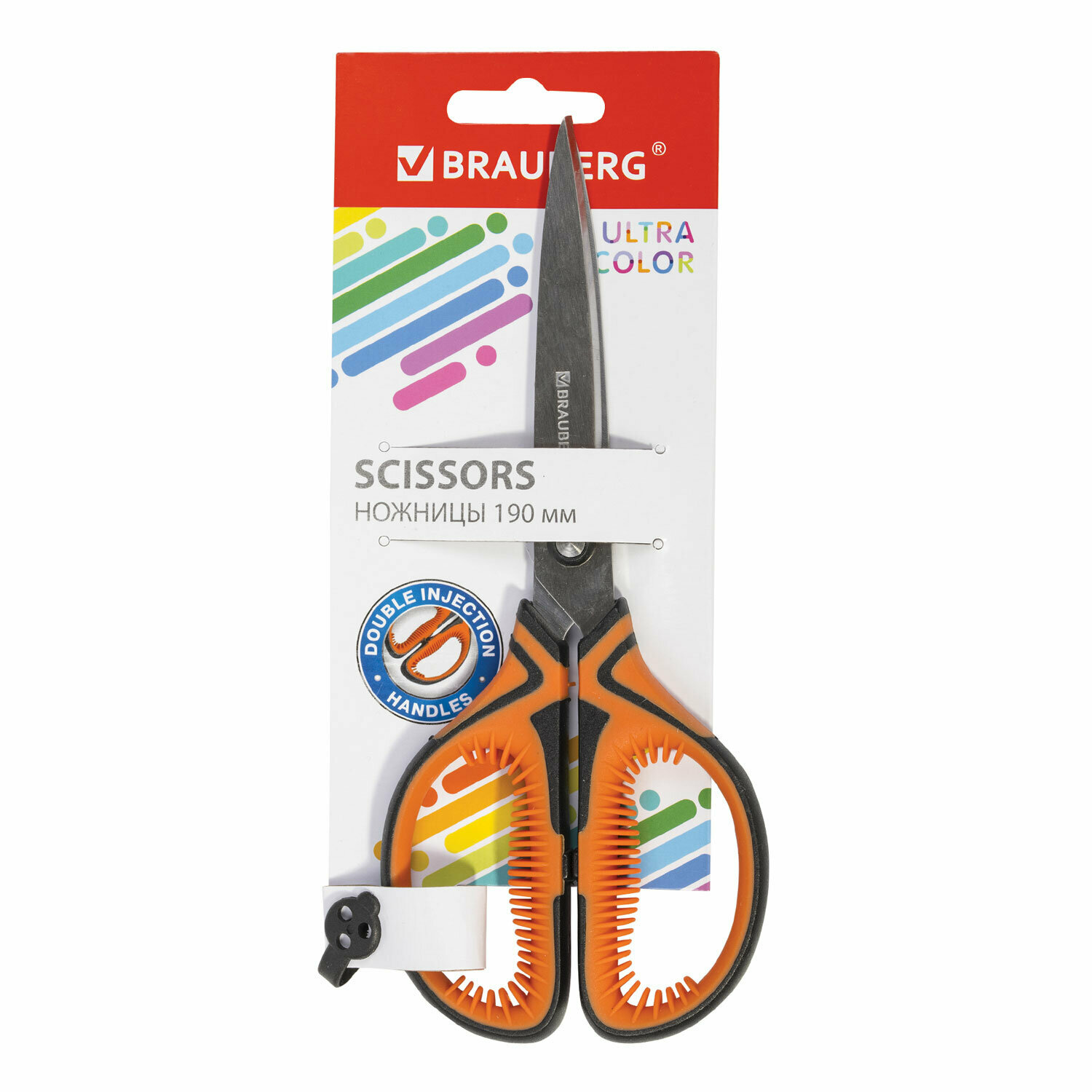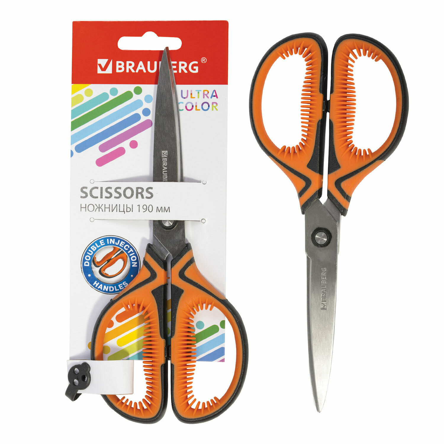 Купить Ножницы для рукоделия 190мм оранжевые BRAUBERG ULTRA COLOR, противоскользящие ручки,880241
