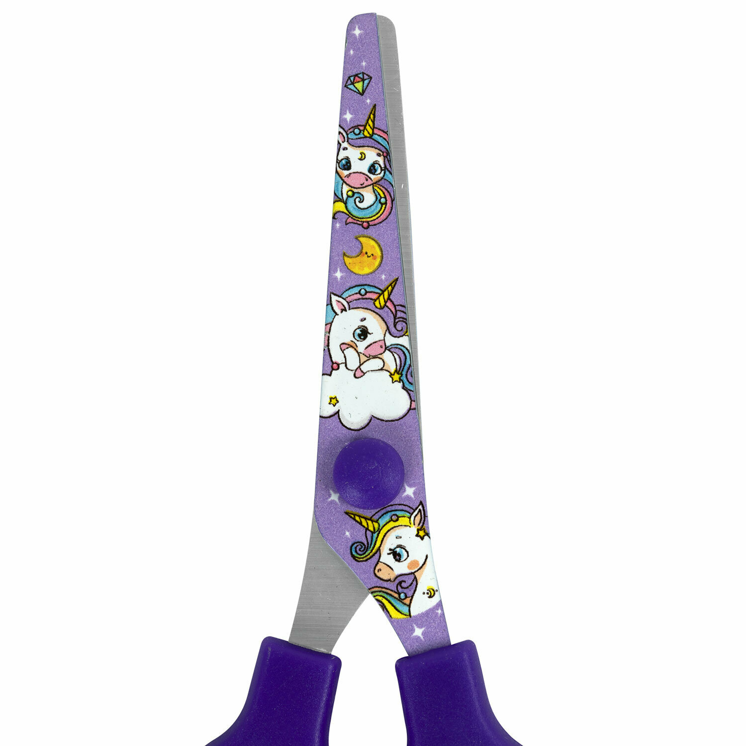 Купить Ножницы канцелярские детские безопасные для бумаги и картона, для школы и творчества маленькие с цветной печатью "Единороги" 130 мм, закругленные, сиреневые, Brauberg Kids, 238350