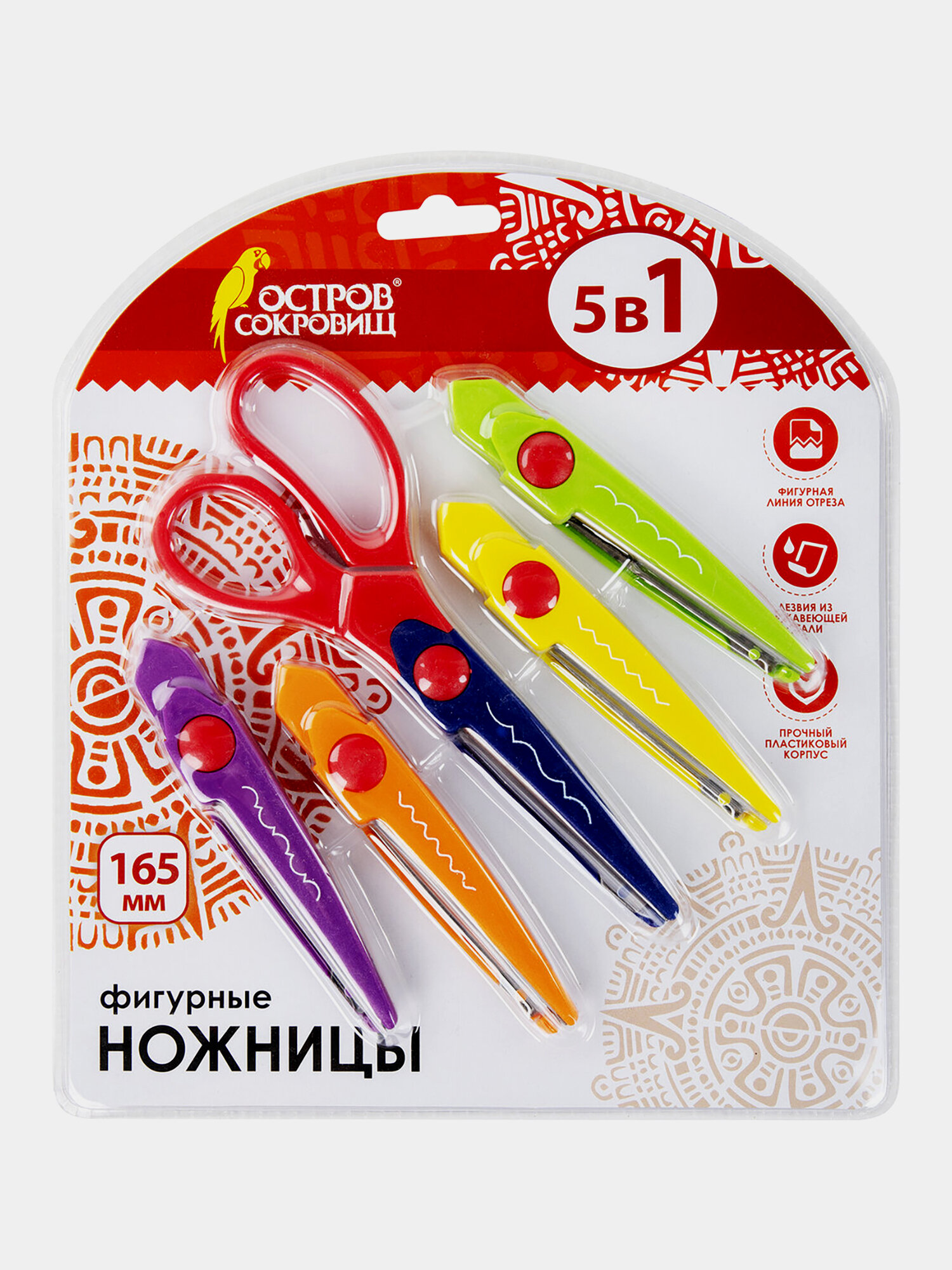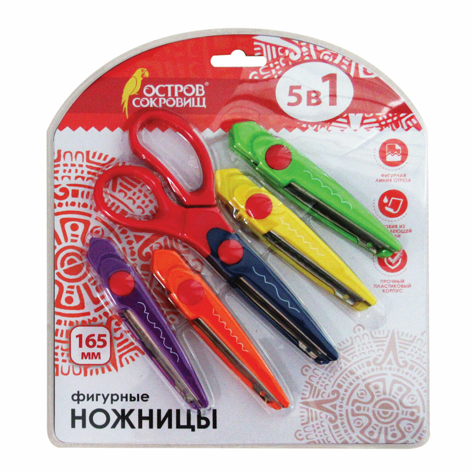 Ножницы остров сокровищ, 165 мм, 5 сменных фигурных лезвий, в блистере, 236782