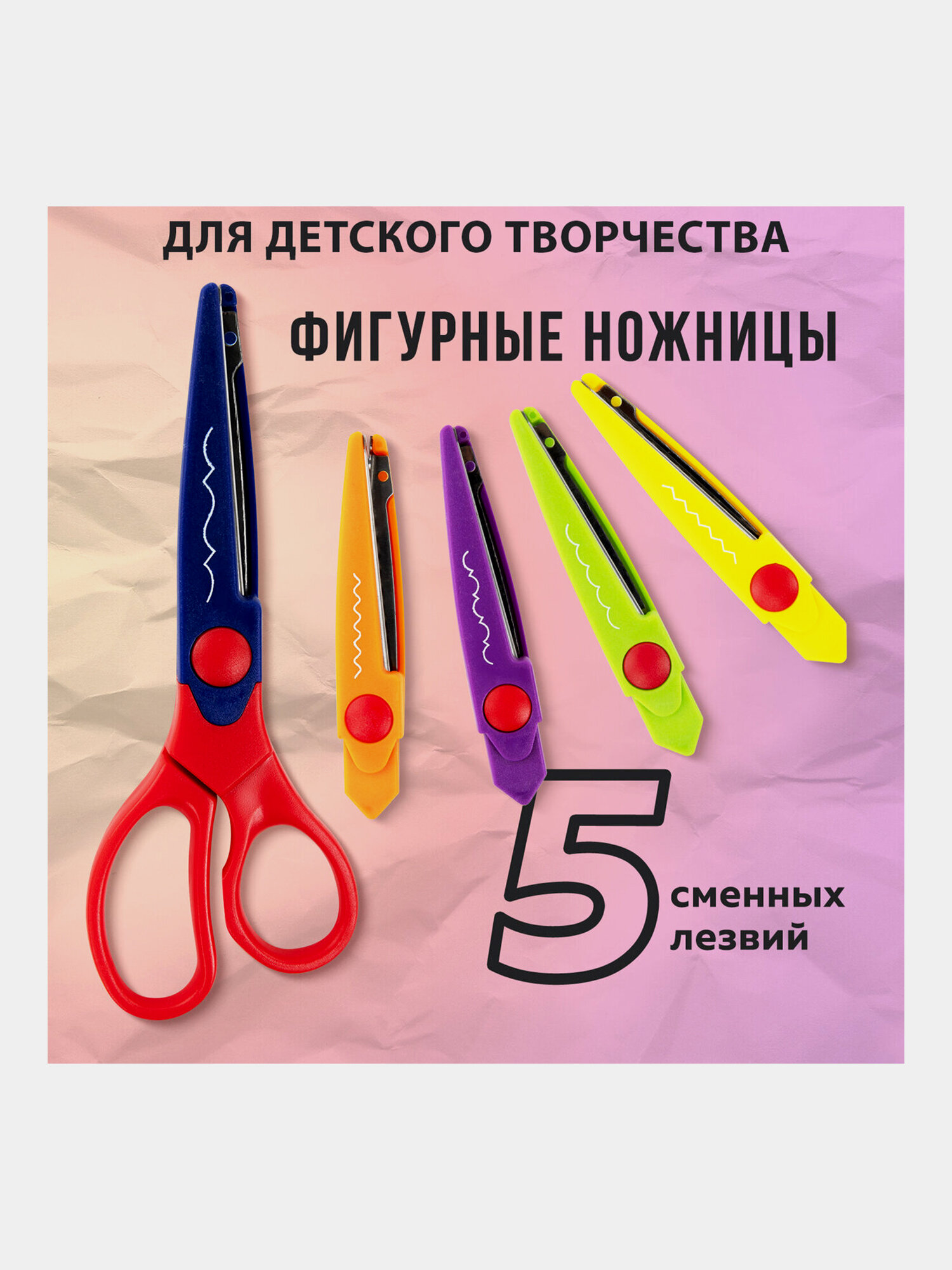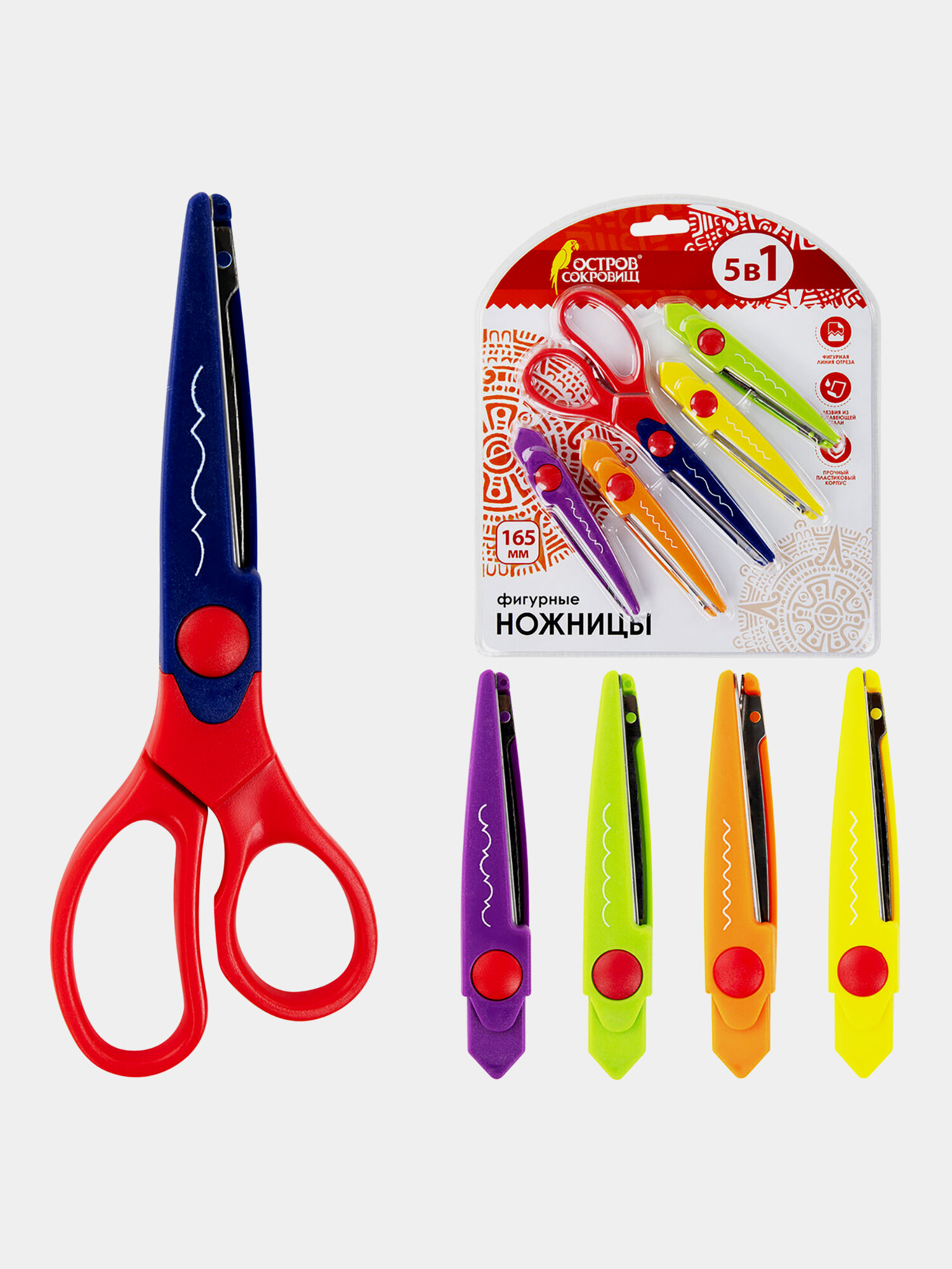 Купить Ножницы остров сокровищ 165мм, 5 сменных фигурных лезвий, в блистере, 236782