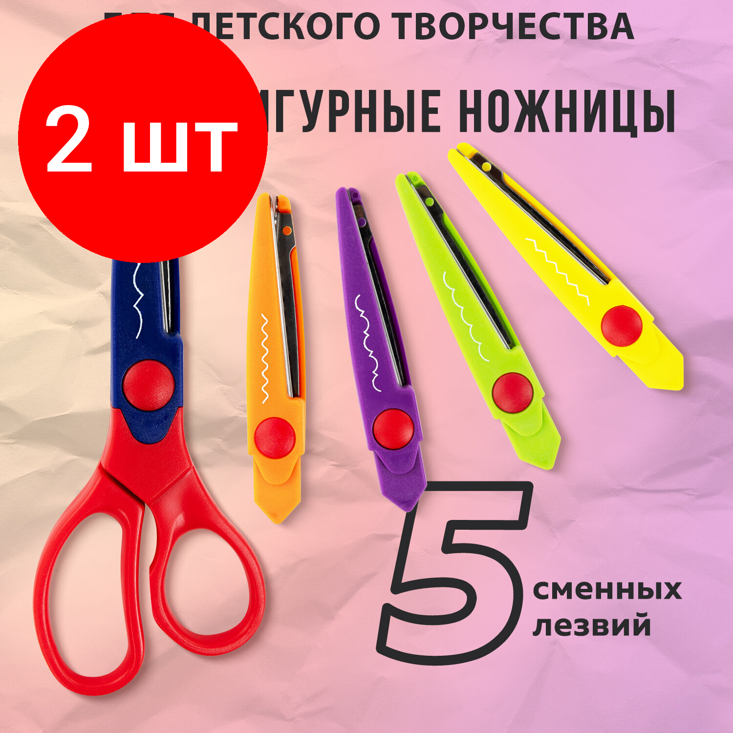 Комплект 2 шт, Ножницы остров сокровищ, 165 мм, 5 сменных фигурных лезвий, в блистере, 236782