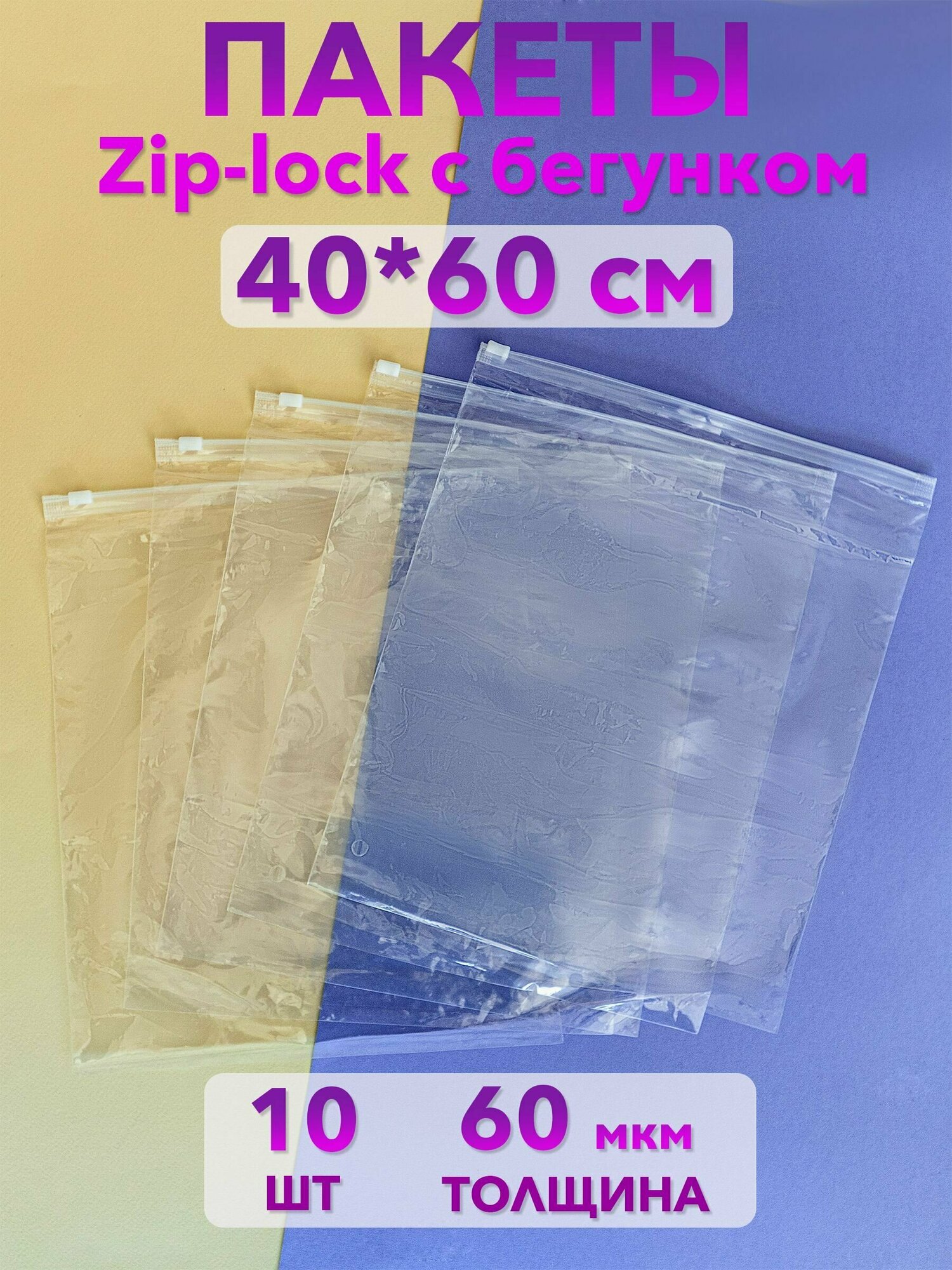 Купить Пакеты зип лок zip lock с бегунком для одежды и хранения вещей, 40х60 см, 10 шт.