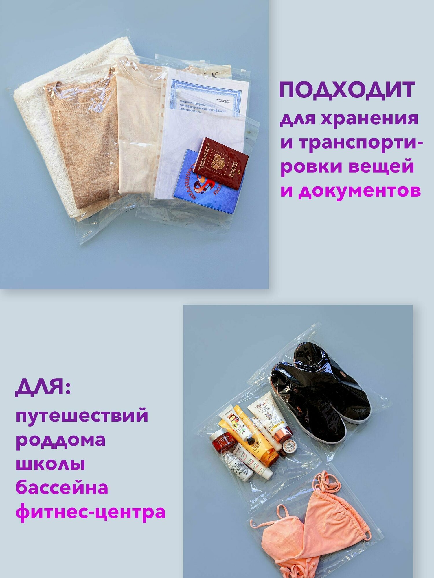 | Дополнительная информация | грипперы с застежкой зиплок; упаковочные пакеты для хранения на застежке; слайдер; пакеты с замком |