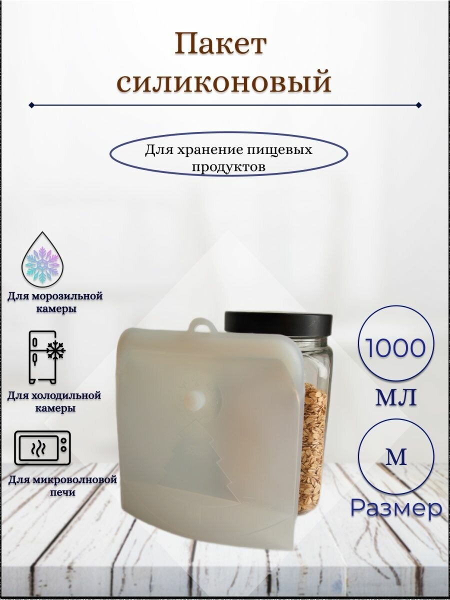Силиконовый фреш-пакет из пищевого силикона многоразовый для продуктов, с клапаном, цвет белый/светло-бежевый