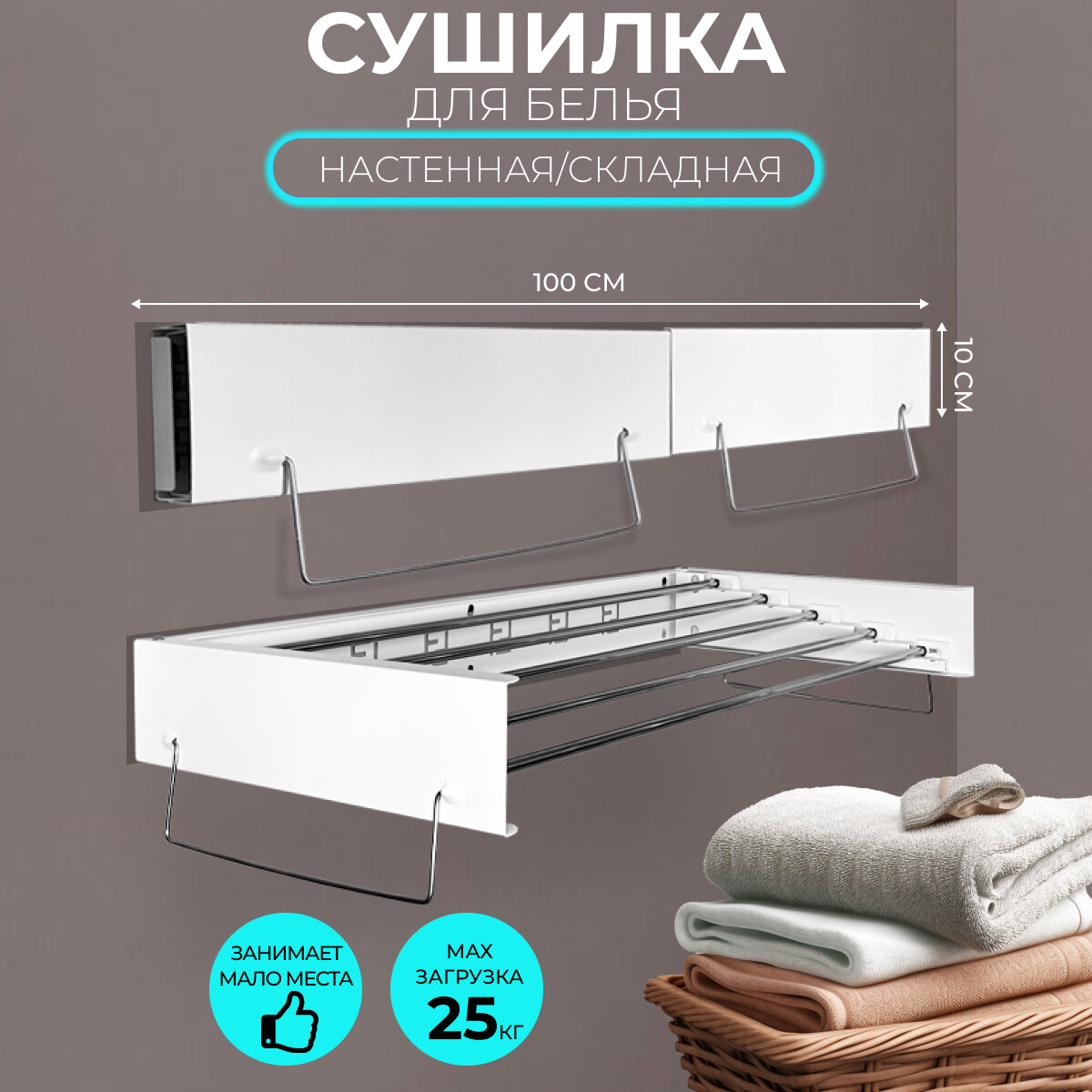 Сушилка для белья настенная, 100х3х10см, металл, 5 прутьев, до 25кг интересное: