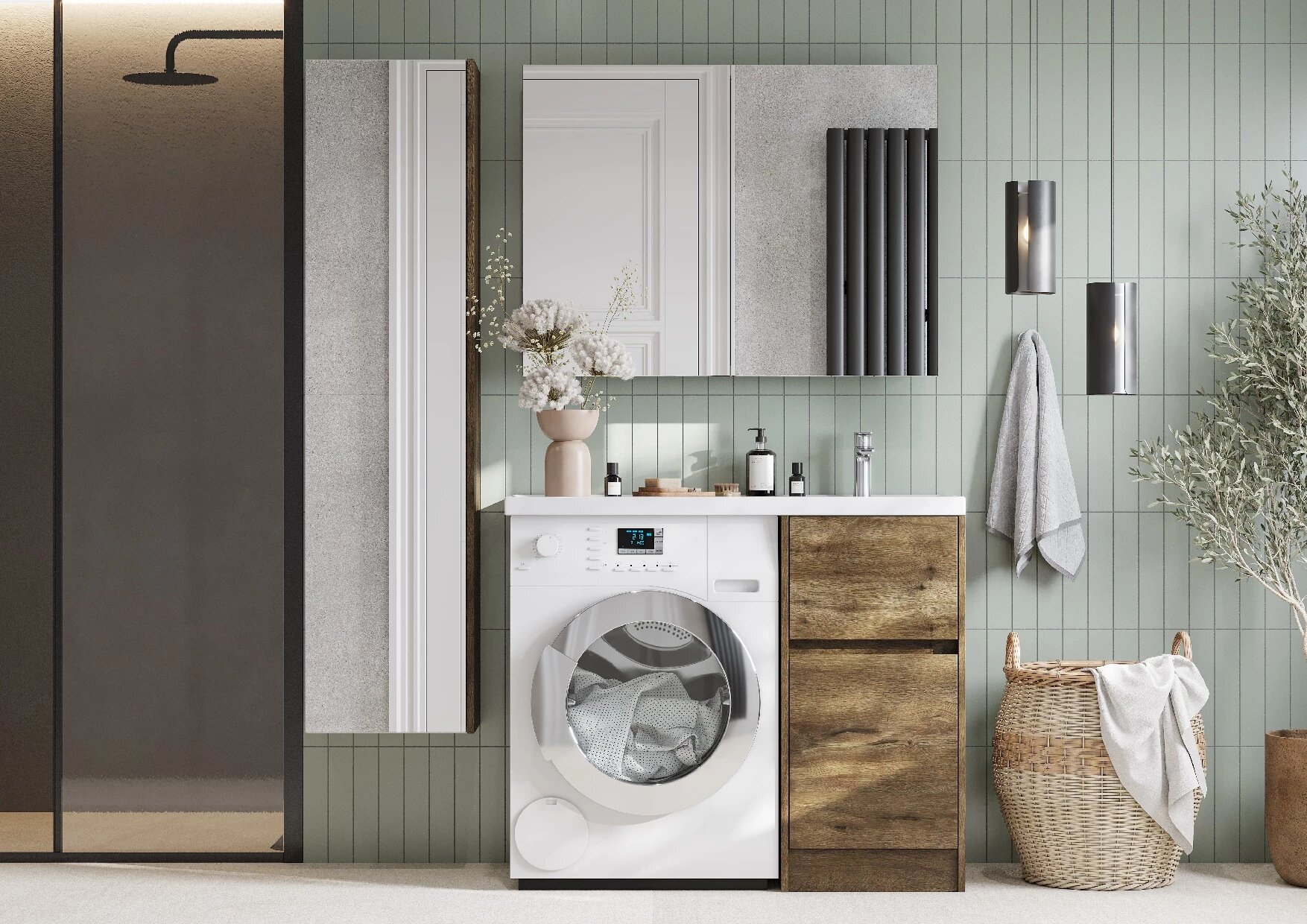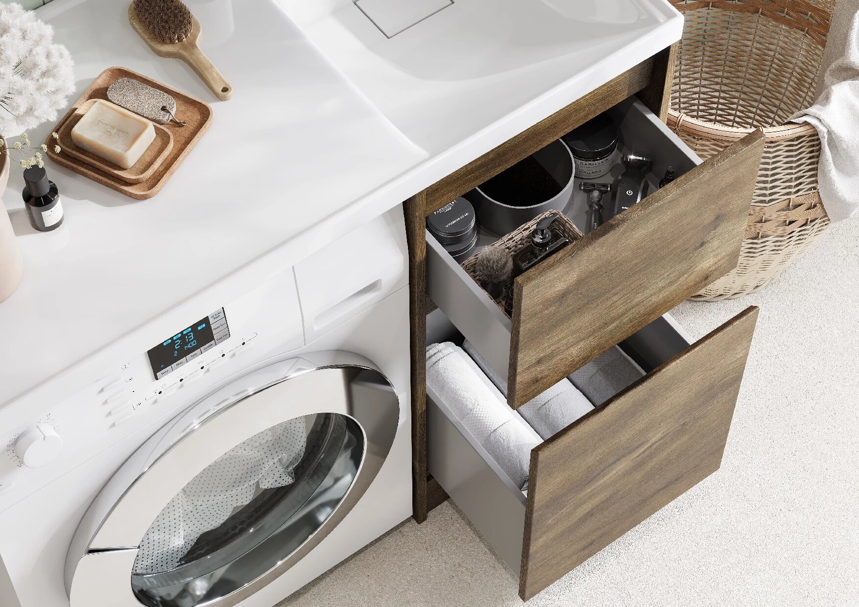 Тумба с раковиной для ванной комнаты под стиральную машину AQUATON 1A2361V0LH010 Лондри 20 белый, раковина Рейн 80