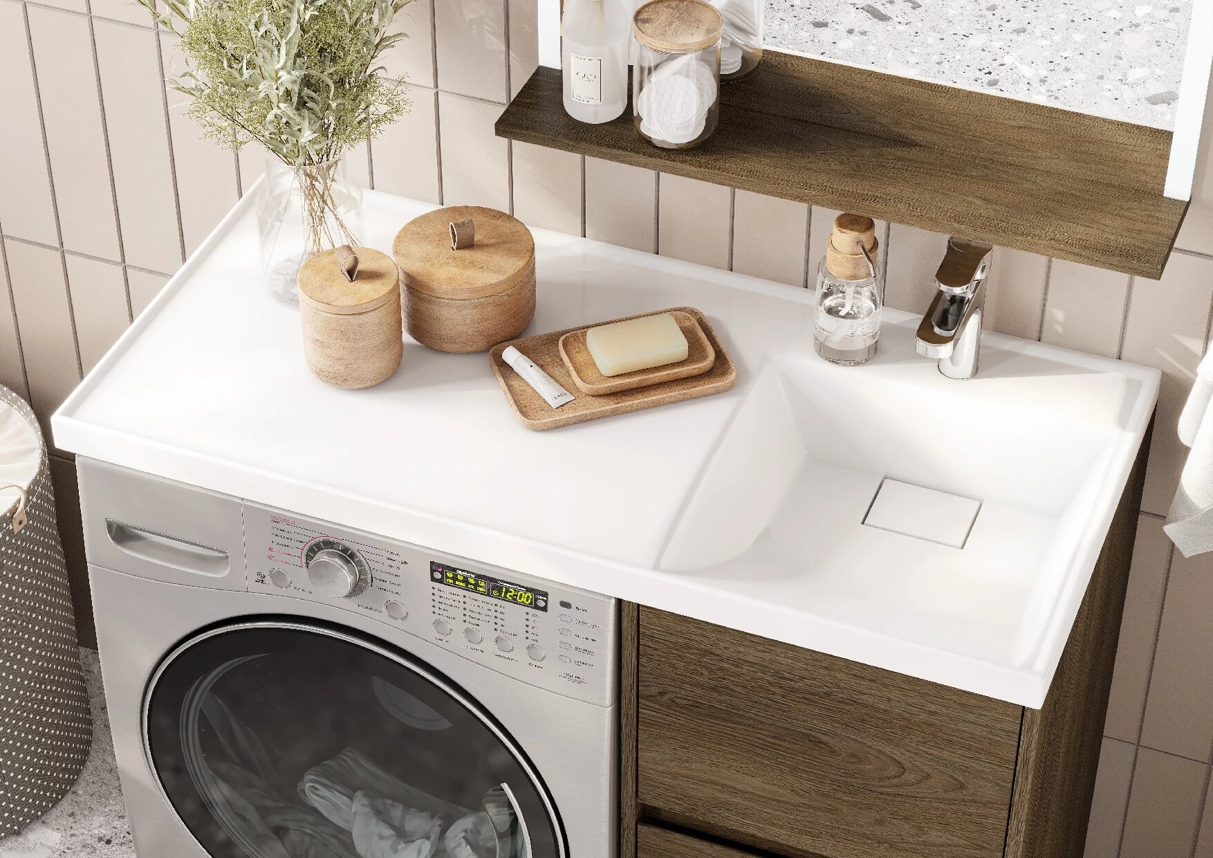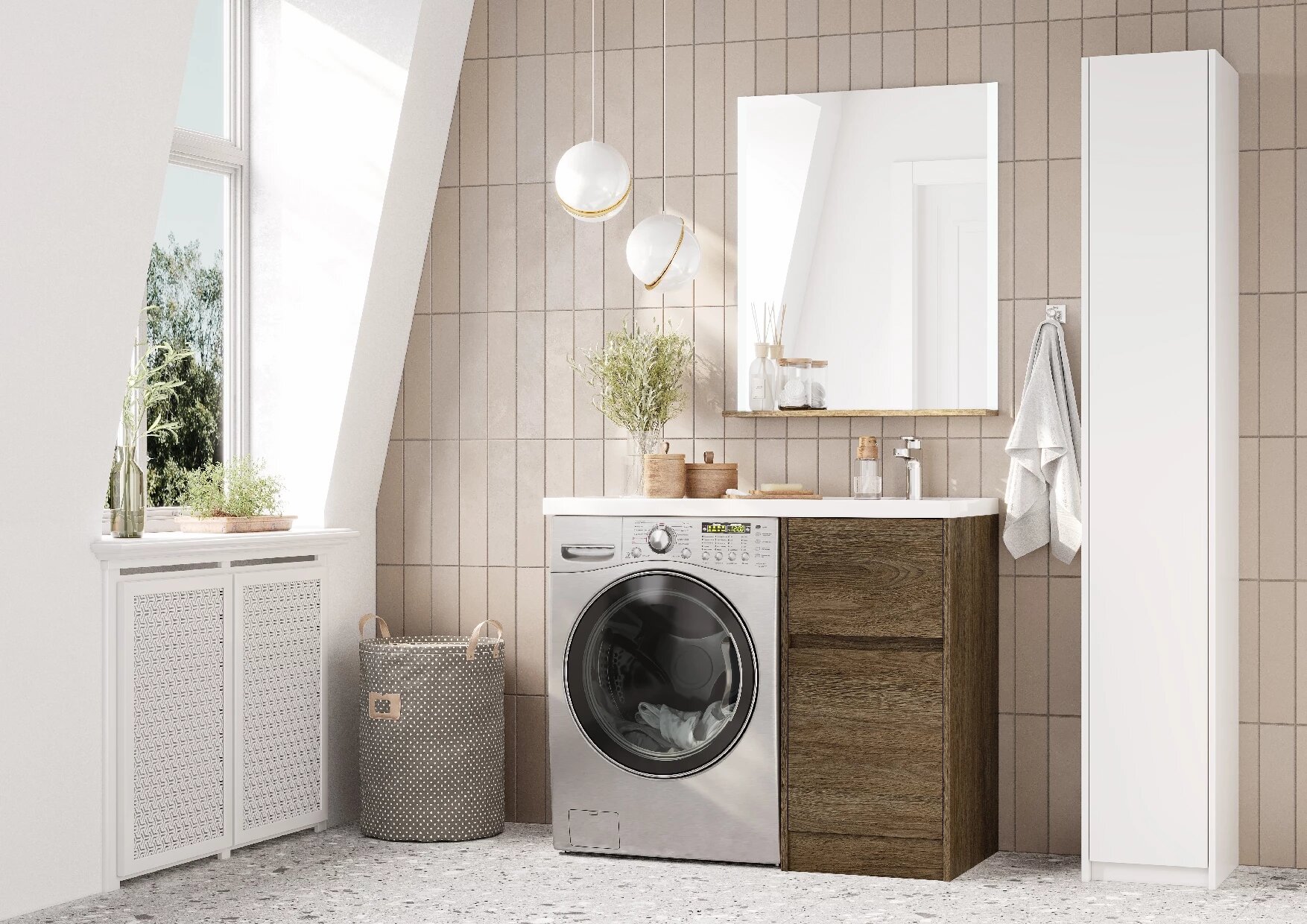 Тумба с раковиной для ванной комнаты под стиральную машину AQUATON 1A2361V0LH010 Лондри 20 белый, раковина Рейн 80