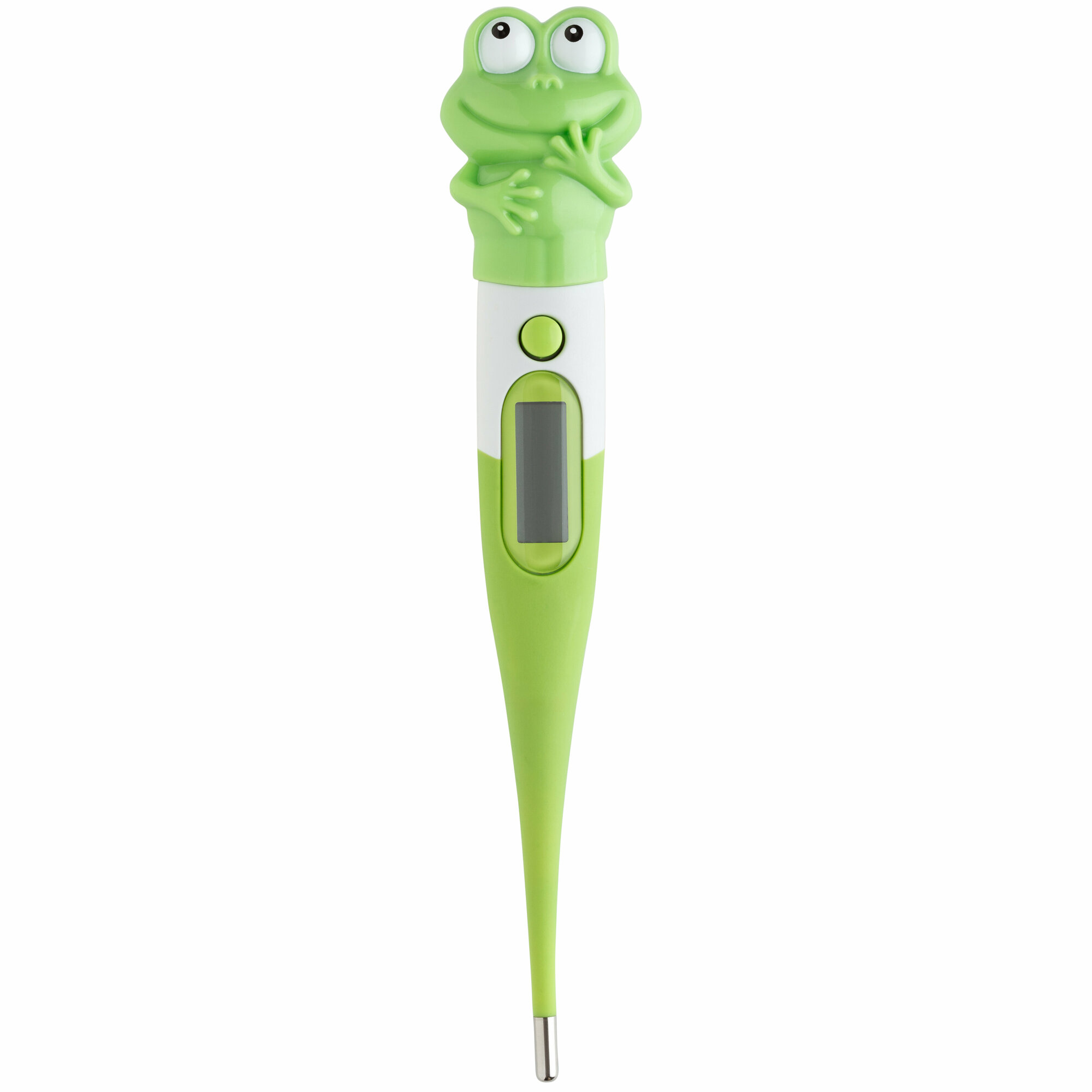 | Отзыв: | Главное для меня, что электронный термометр измеряет точно и что он безопасен. В нем нет стекла и ртути или спирта. Выглядит привлекательно для детей, прикольная лягушка. Быстро и точно измеряет температуру тела. Сам автоматически выключается. Гибкий наконечник. Подходит для детей с младенчества. Мне очень нравится, минусов не вижу. |