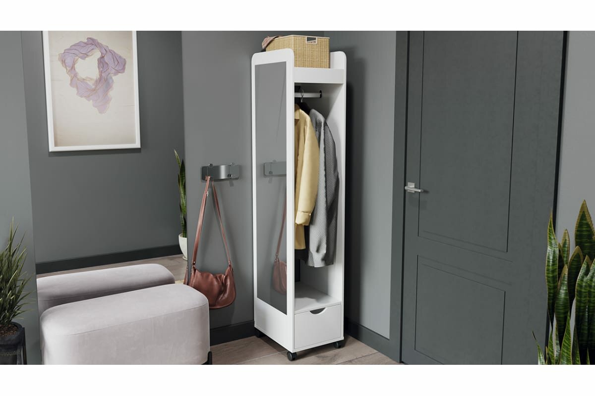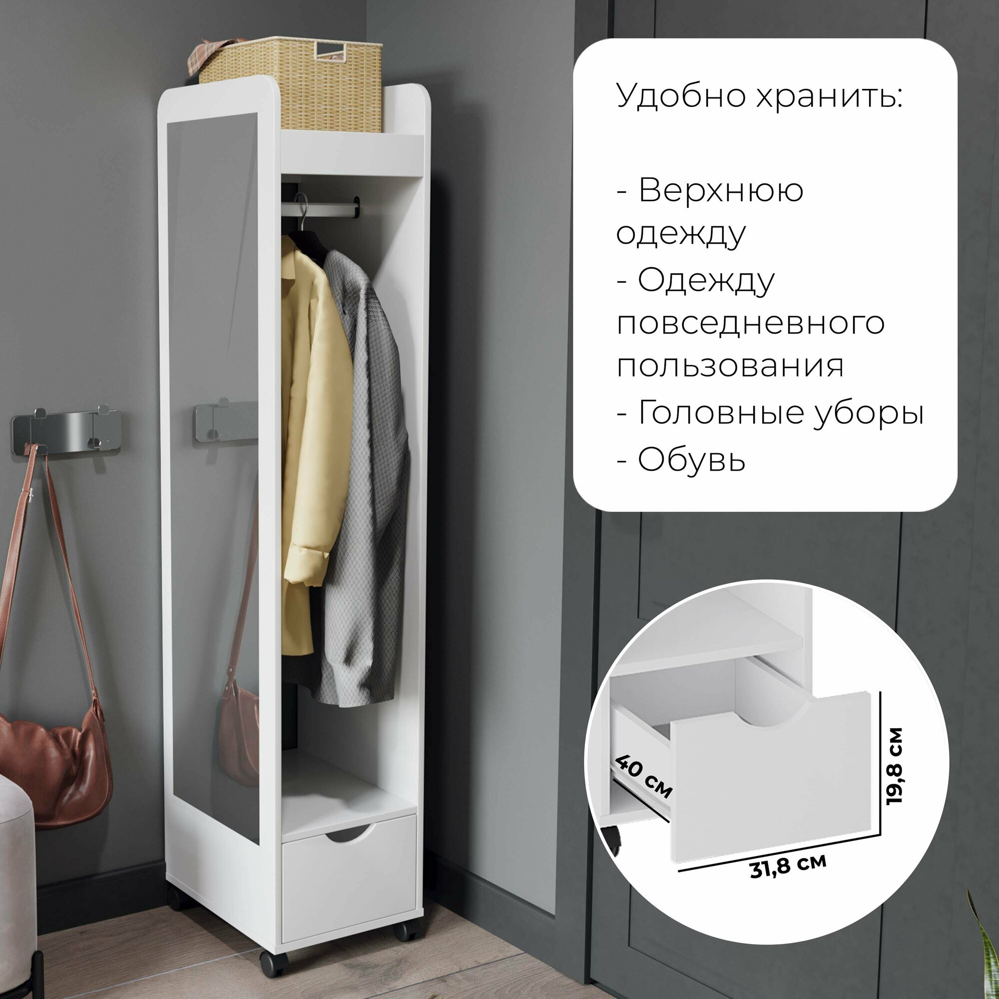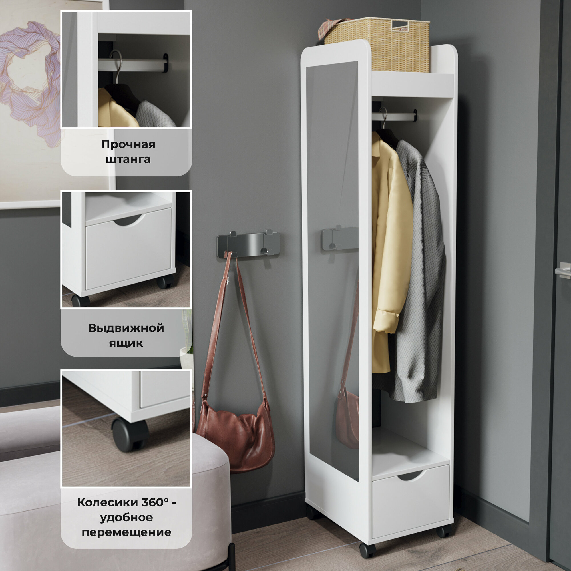 Прихожая мебель белая с зеркалом и ящиком (ВхШхГ) 173х36х46 см, Лайт секция интересное: