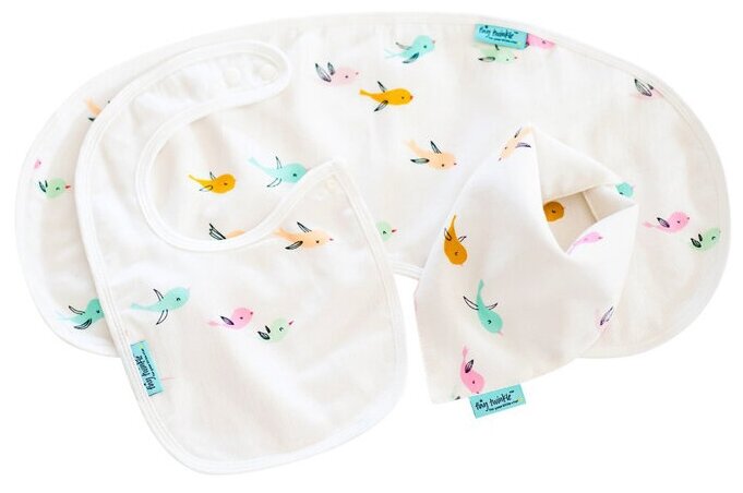 Купить Подарочный набор(слюнявчик, нагрудник, защитная пеленка) TinyTwinkle Цвет:Птички