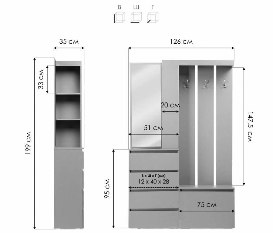 Готовая прихожая Лайфмебель Крона 1260 белый