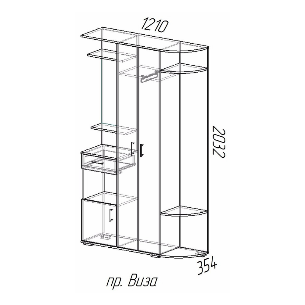 Комплект прихожей "Виза" (Улучшенная фурнитура) , с зеркалом, с ящиками, с полками, 121х35,4х203,2 см Ясень шимо темный / Ясень шимо светлый