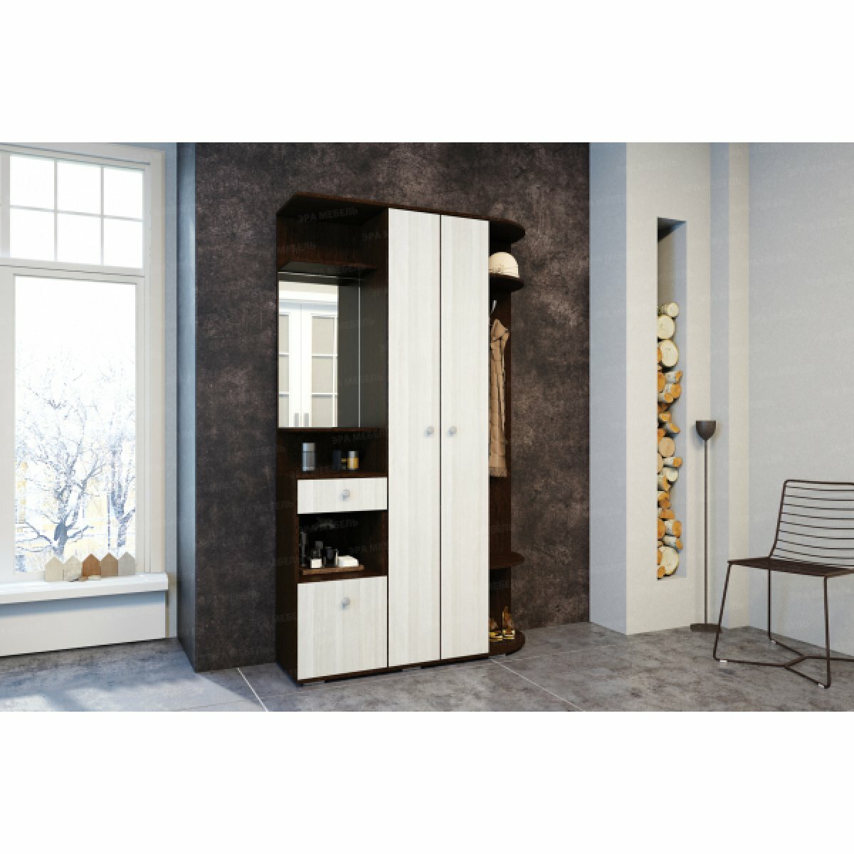 Прихожая МК Эра "Виза", цвет ясень шимо темный/ясень шимо светлый, современный стиль, ЛДСП, 121x35,4x203,2см