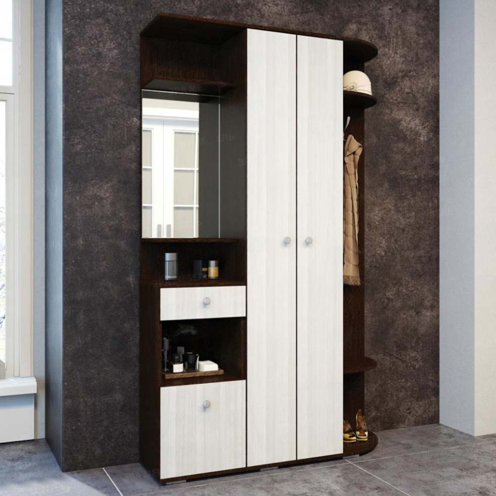 Прихожая ЭРА виза, ЛДСП, 2 двери, 1 ящик, выдвижная штанга, 121 х 203,2 х 35,4 см, венге-лоредо