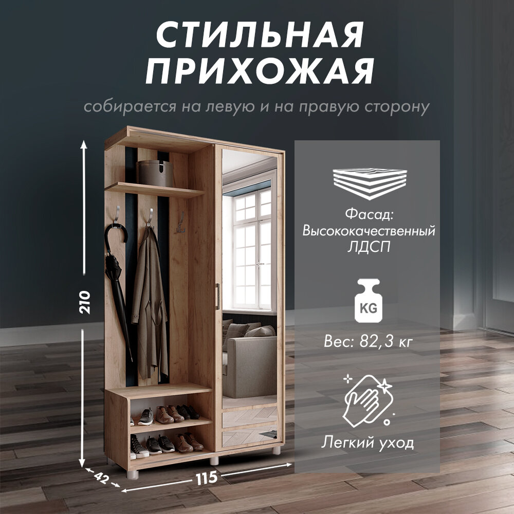 | Особенности | для маленькой прихожей, для узкой прихожей, крепление к стене, с местом для сидения, со штангой для вешалок, шкаф с зеркалом |