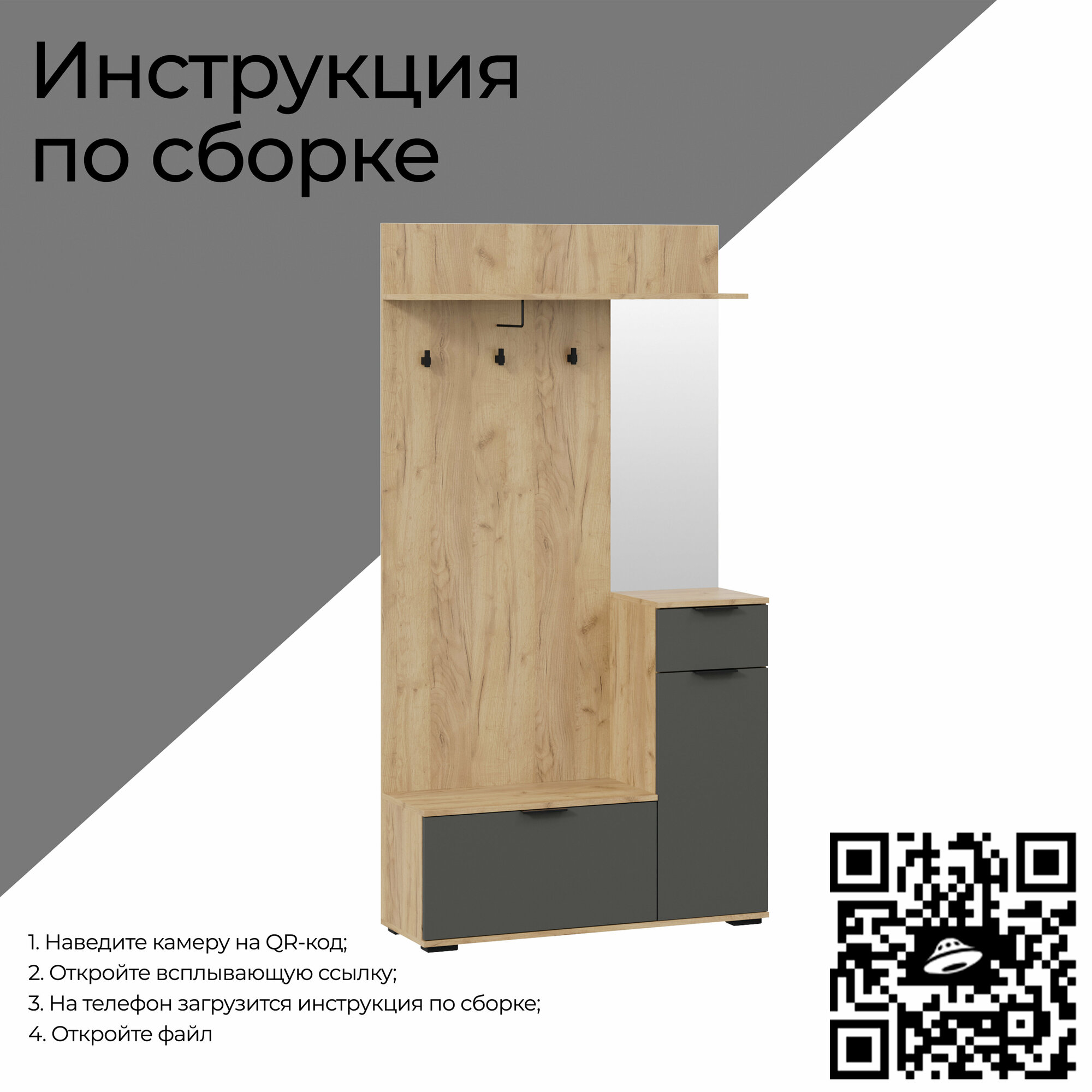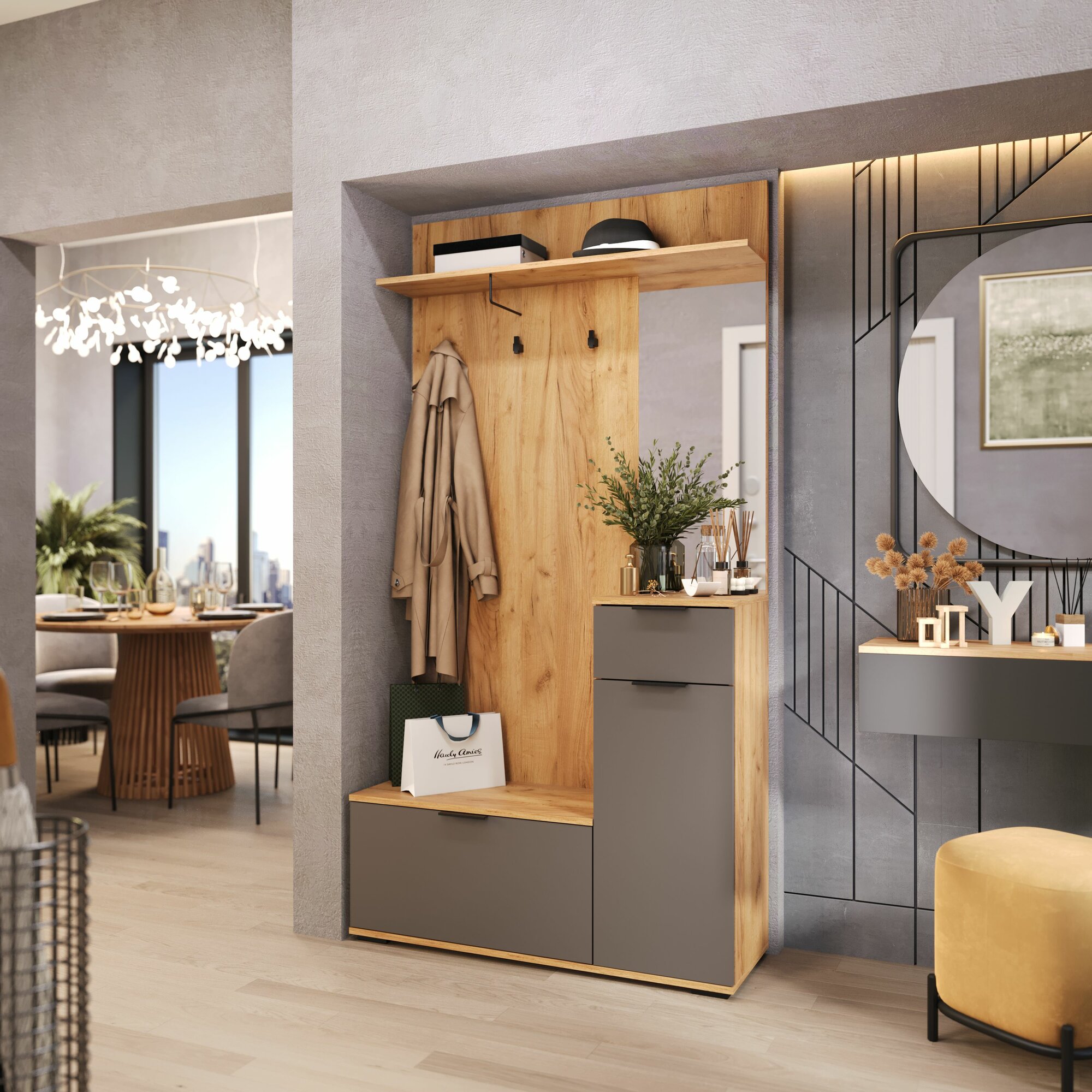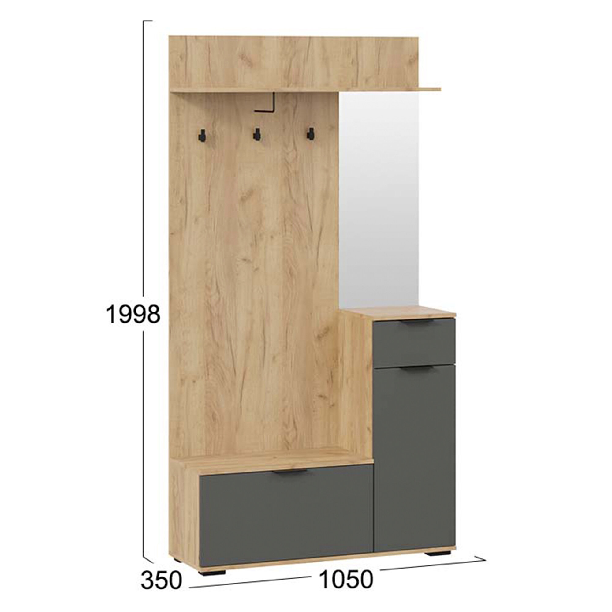 Купить Прихожая в коридор с зеркалом и ящиками, шкаф в коридор, золотой дуб, серый Эвита Тип 1