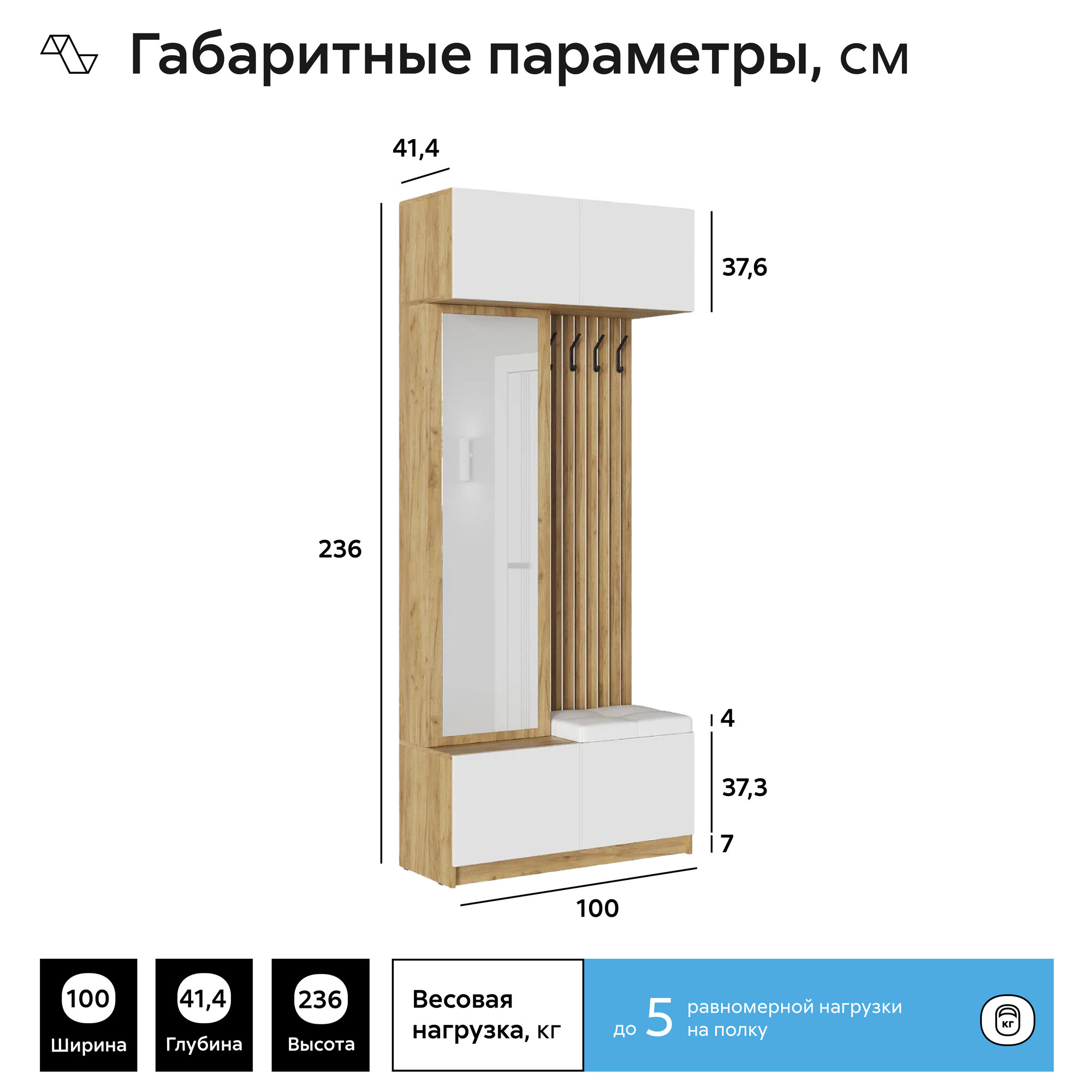 Прихожая МК Стиль Бостон дуб крафт золотой / белый глянец 100х41.4х236 см интересное: